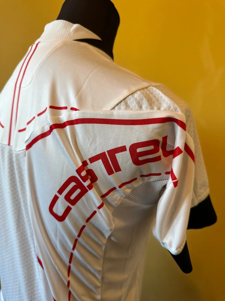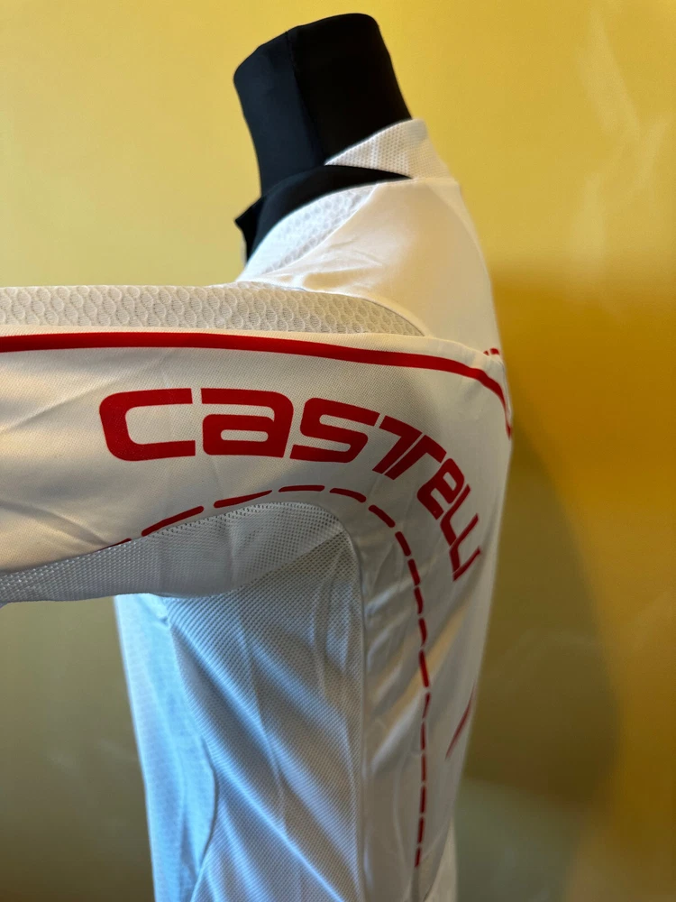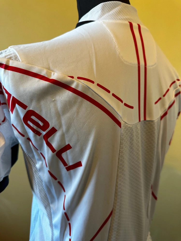 Castelli RIVOLUZIONE FZ Cycling Jersey CarboNot 3D Fabric SIZE L For Men's NEW! The defect is visible in the photo: Pulled threads and dirty. CarboNot 3D fabric provides double-layer moisture transport Sublimation-printed graphic on shoulder and side panels Full-length YKK® Camlock zipper 3 rear pockets with reflective tabs Jacquard rear elastic I accept combined sending, if you have any questions look forward to your messages. The clothes are new, 100% original. Clothes may be with minimal defects, they are slightly visible or not visible at all. If you need more photos, write.