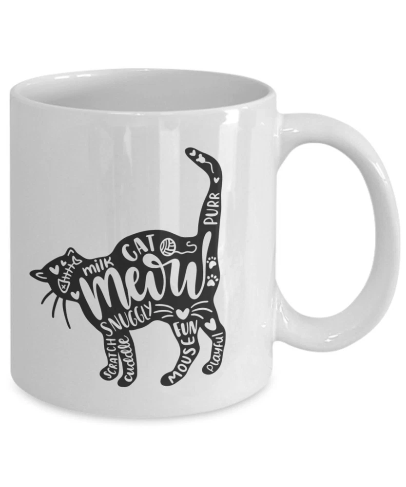 Cat And Words Mug Cat Lover Novelty Coffee Mug Gift Mug Ceramic Cup Gift Idea Funny Mug Funny Meme Funny Gift Product Details.. This high quality 11oz. ceramic white mug has a premium hard coat that provides crisp and vibrant color reproduction sure to last for years. Perfect for all hot & cold beverages. The highest quality printing possible is used. It will never fade no matter how many times you wash it. Material: 100% Ceramic. Print both sides. Dishwasher and Microwave Safe. High Gloss + Premium White Finish. Printed in the U.S.A. Personalized & Custom. We support personalized and custom mug to add custom, when placing an order, you can add notes to the "order note" in shipping address section. Also you can contact us directly via message. Shipping Info. Ready to ship in 1 to 2 business days, All products are made-to-order and proudly printed in the United States. Shipped by USPS and DHL, You will receive your order in 5-7 days. Replace & Refund. All products are defective during shipping broken, chipped will be replaced free of charge. You are not satisfied with the product, we will refund 100% money to you. If any other issues arise, please do not hesitate to message, we would be more than happy to assist you.