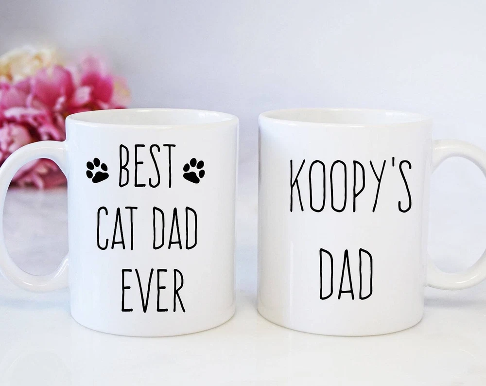 Cat Dad Personalised Mug Cat Mug Personalised Best Cat Dad Mug Cat Mug Gift Product Details.. This high quality 11oz. ceramic white mug has a premium hard coat that provides crisp and vibrant color reproduction sure to last for years. Perfect for all hot & cold beverages. The highest quality printing possible is used. It will never fade no matter how many times you wash it. Material: 100% Ceramic. Print both sides. Dishwasher and Microwave Safe. High Gloss + Premium White Finish. Printed in the U.S.A. Personalized & Custom. We support personalized and custom mug to add custom, when placing an order, you can add notes to the "order note" in shipping address section. Also you can contact us directly via message. Shipping Info. Ready to ship in 1 to 2 business days, All products are made-to-order and proudly printed in the United States. Shipped by USPS and DHL, You will receive your order in 5-7 days. Replace & Refund. All products are defective during shipping broken, chipped will be replaced free of charge. You are not satisfied with the product, we will refund 100% money to you. If any other issues arise, please do not hesitate to message, we would be more than happy to assist you.