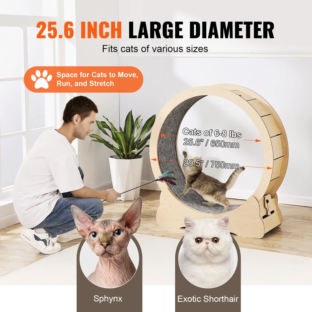 Document Product Description Comfort and Safe Cat Exercise Wheel This cat exercise wheel is crafted from solid wood, ensuring its durability. With a spacious 12.52-inch wide base, it provides your cat a stable area to exercise. The unique 0.2"/6 mm gap design ensures safety, allowing your feline companion to run freely on the wheel. Featuring a silent wheel and noise-reducing holes, our cat wheel can reduce noise by 10-20%, creating a peaceful and enjoyable exercise environment for your pet. This allows you to coexist harmoniously with your pet and family. The spacious inner diameter provides your furry cat with ample room for free and comfortable movement, suitable for cats of all sizes. Whether big or small, they can all easily use it to run and play. The detachable inner mat makes cleaning a breeze. You can easily remove and clean or replace the inner mat. Pre-installed cat running wheel and expansion screws make installation simpler and more secure, providing you with added convenience. This isn't just a cat exercise wheel; it's also a cozy cat bed. You can place soft cushions, blankets, or mattresses on the wheel, making it a comfortable cat home. Features & Details Built to Last and Secure: This wooden cat exercise wheel is made from solid wood board with a 0.5"/12 mm thickness and an ultra-narrow 0.2" gap to prevent paw injuries. The widened base and running track deliver added stability. It offers many health advantages to cats, such as mitigating obesity risks and enhancing joint flexibility, ensuring their contentment. Tranquil and Noise Reduction: Equipped with an integrated silent wheel and a bottom noise-reduction, this double noise reduction design creates a quiet and pleasant exercising environment for your pets, while also improving the indoor atmosphere. Suitable for All Cat Sizes: With an external diameter of 29.5 in/750 mm and an internal diameter of 25.6 in/650 mm, this cat wheel accommodates cats of all sizes, supporting feline friends up to 8 lbs. It allows your cats to stretch and roam freely, enabling them to release their energy to the fullest. User-Friendly Design: Easy installation with pre-installed expansion screws and wheel, saving you valuable time. Included accessories like gloves, a screwdriver, and a cat teaser add extra convenience. This cat treadmill is a breeze to clean with a non-scratch detachable looped mat, easily spot-cleanable with a cloth or sponge. Versatile Cat Wheel: Featuring a locking mechanism to keep it steady, this cat running wheel is adaptable for interactive cat play, as a cat resting place, and as a furniture piece. It can be set to a stationary mode for cats running and spinning, allowing them to climb and take a nap. Cats can also frolic, chase, and keep themselves entertained! SHIPPING ABOUT US PAYMENT RETURNS CONTACT WARRANTY Welcome to our eBay store. As a leading and emerging company in manufacturer and exporting business, we are specialized in Business and Industrial Products, Sporting Goods, Pet Products, Home and Garden products for more than 10 years. We believe that it is our vision and mission to provide innovative products with best service and competitive price to satisfy you. Our goal is to make sure that you can find exactly what you are looking for and make it easy for you to place your orders. We accept PayPal payment,PayPal Credit,Credit card or debit card and so on. Payment should be completed within 4 (Four) days of auction closing. Or unpaid dispute will be filed for closing auction. We will leave a positive feedback immediately after payment is received. We appreciate a positive feedback as much as you do. If for some reason there is any issue with the purchase, please contact us prior to leaving feedback, we will be glad to work together and provide a satisfying solution. Please be aware that PO Box cannot receive items, please DO NOT fill in the PO Box address. DELIVERY DAYS: 3-7 BUSINESS DAYS 3 BUSINESS DAYS SHIPPING OUT SHIP FROM CA & TX & NJ & GA & NC &OR WAREHOUSE California Warehouse: City of Industry, CA Texas Warehouse : Houston, TX New Jersey Warehouse : Perth Amboy, NJ New York State Warehouse: Perth Amboy, NJ Georgia Warehouse: Austell,GA North Carolina Warehouse: Grove NC Oregon Warehouse: AIRPORT WAY Portland,OR All of our items are backed with a 30-day return policy. We ensure all our items are new and in excellent condition prior to shipping. In case you receive the item that is not to the standards above, please contact us via e-Bay messages. All returns must be in new original condition as received and should be shipped with delivery confirmation Please note that all returns must be pre-approved by us. Unauthorized returns will not be accepted. If you need to return, please check twice to confirm the item not work and contact our customer service representative, let us know the detailed problem and send us some pictures for confirmation. We ONLY accept returns with original package. Please make sure that item has NO man-made sabotage. Used items will not be accepted for return. Email Customer Support: 9:00am-2:00am PST Sunday-Friday All emails will be responded to within 12-24 hours This item comes with 12 months Warranty from the date of customers purchased it. Special circumstances will be listed clearly in the listing. If your item has been damaged in transit or become faulty in warranty period, please email us with pictures or video to show the problem. Please do check everything carefully after you received the parcel, any the damage except DOA (Dead-On-Arrival) would not be covered if it's your fault. Replacement products are provided with the same warranty as the returned products. VEVOR is a leading brand that specializes in equipment and tools. Along with thousands of motivated employees, VEVOR is dedicated to providing our customers with tough equipment & tools at incredibly low prices. Today, VEVOR's products are sold in more than 200 countries and regions with 10 million plus memb