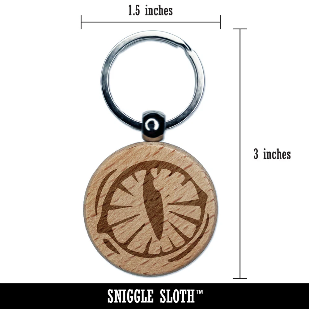 Cat Eye Engraved Wood Round Keychain Tag Charm