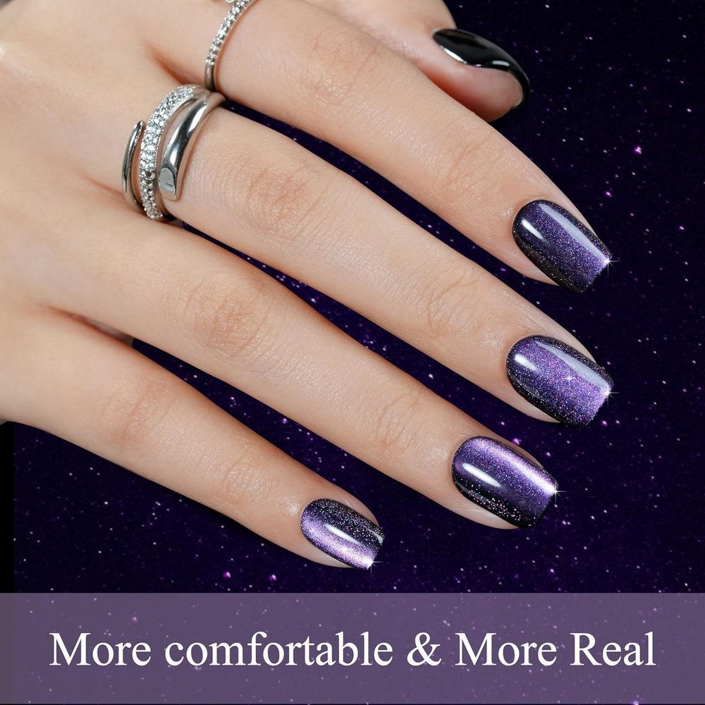 【New Upgraded Salon Effects】The set contains 5 newly upgraded salon effect short press-on nails, a total of 120 pcs winter style 3D light-chasing cat's eye nails, dark red/dark purple/dark blue, brown-red and olive green with chameleon effect, each color is very special, velvety texture of fine flashes create luxurious charm, very suitable for various winter combinations. 【High Quality & Durable】Full coverage false nails are made of high quality acrylic material and soft gel, the nail tips are elastic and durable, not easy to break. The surface of the fake nails is coated with a high-gloss protective gel, which is not easily worn out even after repeated use. 【Natural & Comfortable】Jofay Fashion acrylic nail tips are of moderate thickness, and the tapered cuticle design fits the edge of the nail better, giving a comfortable and natural effect without placing a heavy burden on the nail bed. 【Press On and Go】The fake nail set is small, lightweight and easy to carry, so you can quickly change your nails anytime, anywhere, whether you are traveling or on a business trip. Reusable short glue on nails are a great choice for travel/home manicure. 【Perfect Gift for Women】 Gel nail press ons are very suitable for many social occasions such as weddings, proms, dates, and also suitable for Valentine's Day, Halloween, Christmas and other festivals. These holiday nails are the perfect gift for girlfriends, wives, women and girls.