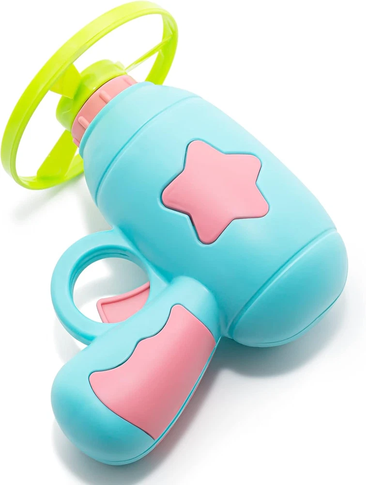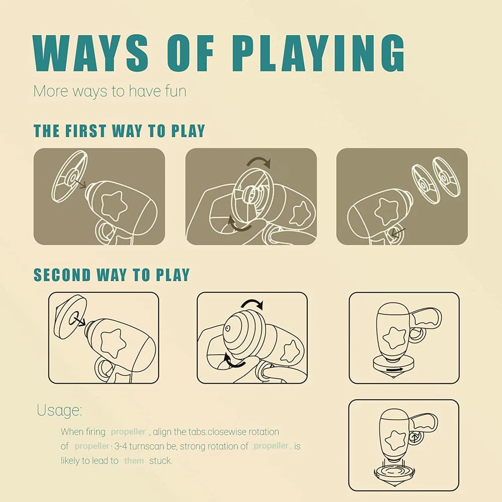 Safe Cat Fetch Toy: This cat toy disc set is made of superior ABS plastic material, non-toxic and safe, light in weight, easy to carry, suitable for daily use, and the toy is smooth around it, which will not harm your cat. The flying propellers are also bite resistant and abrasion resistant. Delivery Content: 1 Pcs cat fetch toy flying disc saucer launcher (Blue) + 1 Pcs LED light up spinning tops + 1 Pcs LED flying propellers + 4 Pcs flying propellers, Random colors of spinning tops and flying propellers. Disc launcher size: 4 x 4.3 x 2 inch; Spinning Tops size: 2.5 x 2.5 x 1 inch; Flying propellers size: 3 x 3 x 0.9 inch. How to Play: First install the propeller, turn it clockwise 3-6 times, aim, and pull the trigger to launch, your cat will have great fun with this fetch toy. Please don't rotation the discs excessively, otherwise it will affect the service life of the toy. Supervise pets during play to avoid ingestion of small parts and replace broken toys timely. Interactive Cat Toy: Cat fetch toy shooter can help cats consume vitality and exercise, encourage cats natural hunting and naughty instincts, and maintain their flexibility without gaining weight, Keep your cat healthy and happy! At the same time, playing with these toys with your pet can also promote the intimacy between you and your cat. The Best Gift for Cats: Our disc toy set which are enough for your pet to play and use, and the flying propellers of different colors will effectively attract cats. It is suitable for cats of all sizes and can also be used as a gift for your family and friends who love pets, is the best gift for you and your cat. Product Description