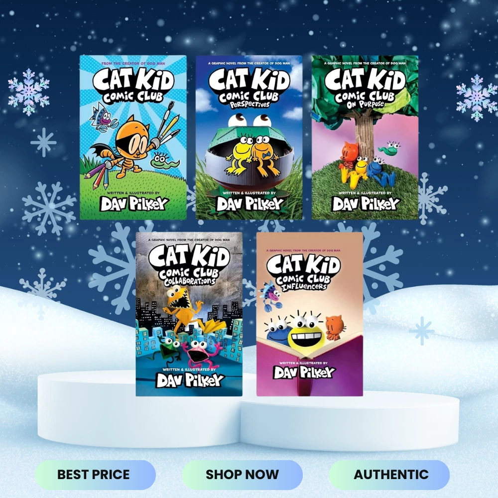 Cat Kid Comic Club #1-5 Pack | 9781546133155 | SEALED | FREESHIP | AUTH This product is brand new with a sealed box. Will be shipped fast and securely! DETAIL Bestselling author-illustrator Dav Pilkey shows the reader that the best way to influence people is to be open, gentle, and kind. The variety of art styles, paired with Pilkey's trademark storytelling and humor, inspires imagination and innovation for readers of all ages. This set includes: Cat Kid Comic Club #1 Cat Kid Comic Club #2: Perspectives Cat Kid Comic Club #3: On Purpose Cat Kid Comic Club #4: Collaborations Cat Kid Comic Club #5: Influencers