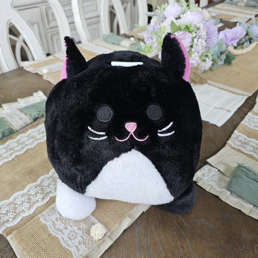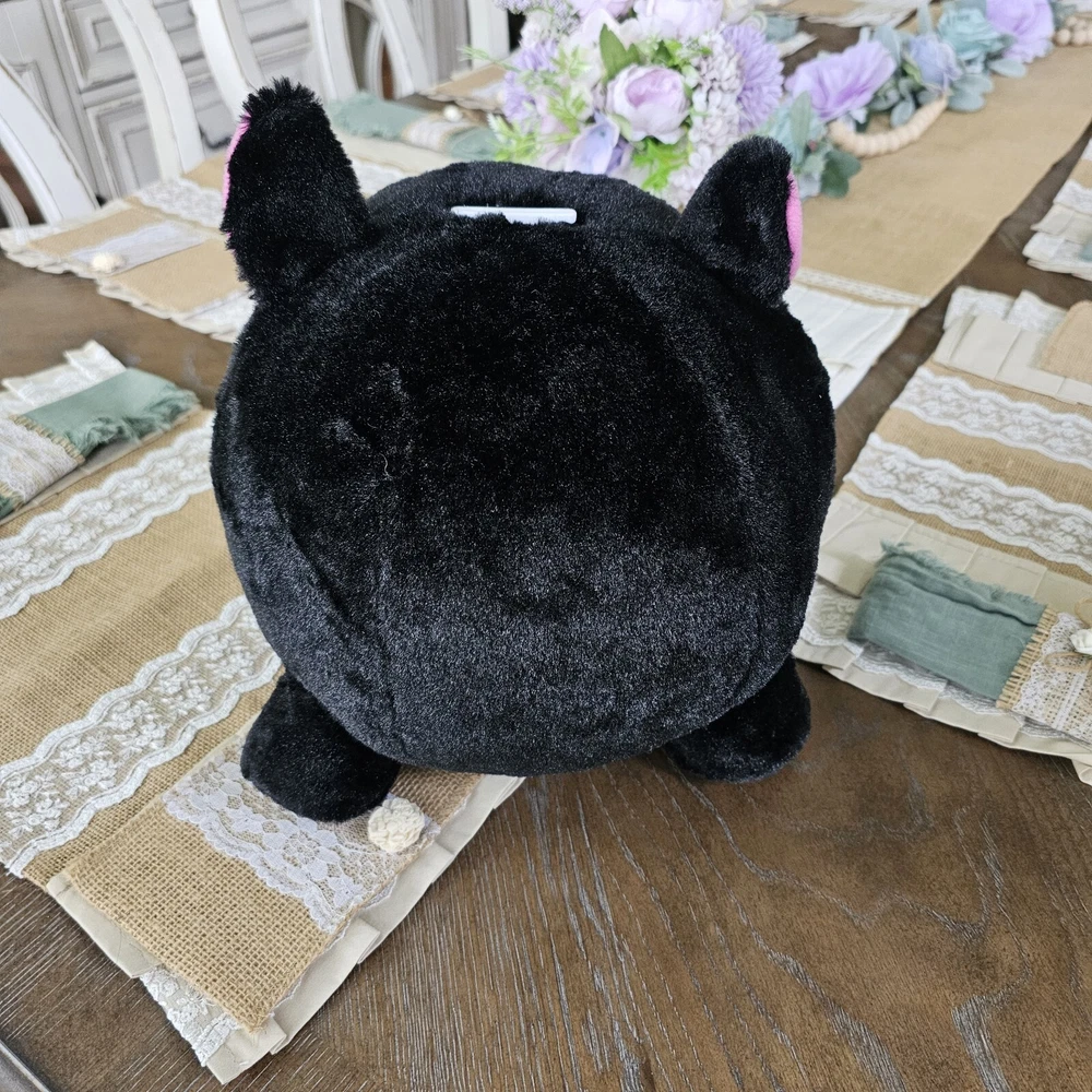 This jumbo plush bank is the perfect addition to any cat lover's collection. Made by FAB-NY, this bank is designed to look like a cute and cuddly cat. It is the perfect size for storing coins and money, and its black color gives it a sleek and stylish look. Manufactured in China, this bank is a great gift for kids and adults alike. Its unique design makes it a great addition to any collection, and its size ensures that it will stand out. Whether you're a collector or just looking for a fun and unique storage solution, this cat bank is sure to please.
