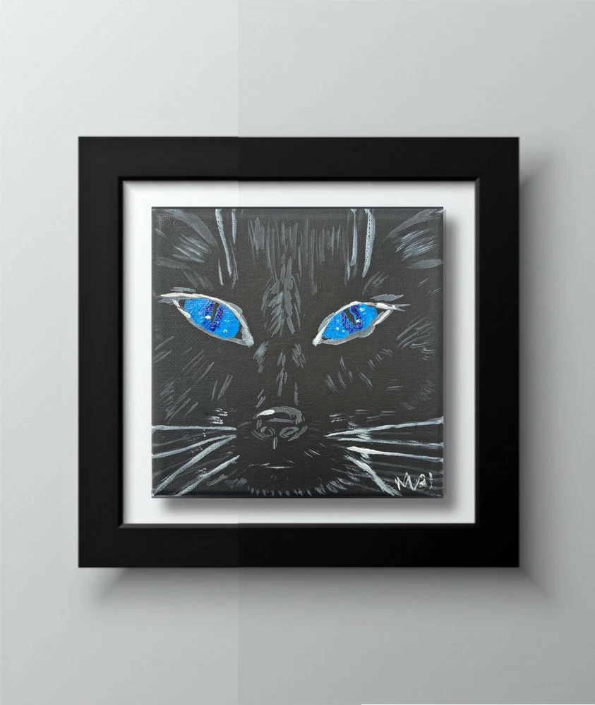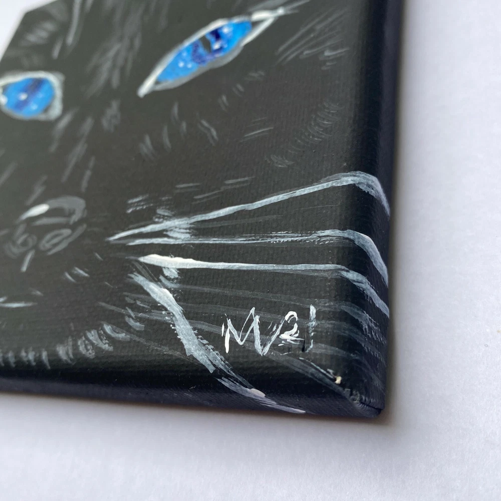 This beautiful black cat painting would be a great addition to your home decor and artwork collection. The painting is an original and would make a perfect gift for any cat lover. The painting is made by Margarita Voropay using acrylic paint and has a contemporary art and impressionist style. The painting features the portrait of a black cat and has been created on a canvas painting surface. The painting has been listed by the artist Margarita Voropay under the categories of Art and Paintings with the theme of Animal Wall Art. This painting is signed by the artist and is a unique item that will make any room it is displayed in more vibrant. Order yours today! Made to order! Cat Painting Pet Portrait ORIGINAL on Canvas Artwork Animal Wall Art Black Cat Art Acrylic Painting Mini Painting 5” by 5” / 13 x 13 cm I now have a finished painting in size 5” x 5” / 13 x 13 cm, Wall art Canvas Painting “Portrait Cat” Colorful: Black, Blue and White Original Artwork ABOUT THIS PAINTING: Portrait Cat, so cute! These Canvas Wall Art pieces are Bright, exciting, Colorful, & Fun colors! Fast Order Processing! Happy Shopping!