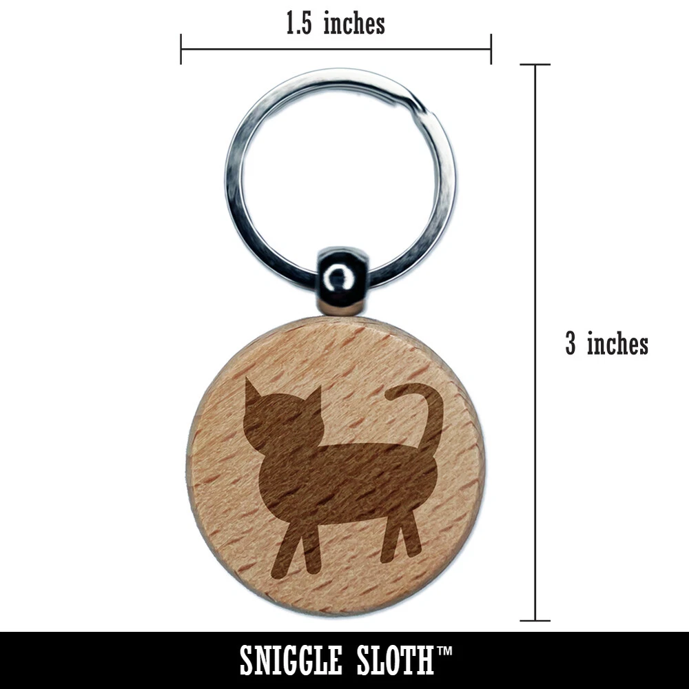 Cat Prancing Solid Engraved Wood Round Keychain Tag Charm