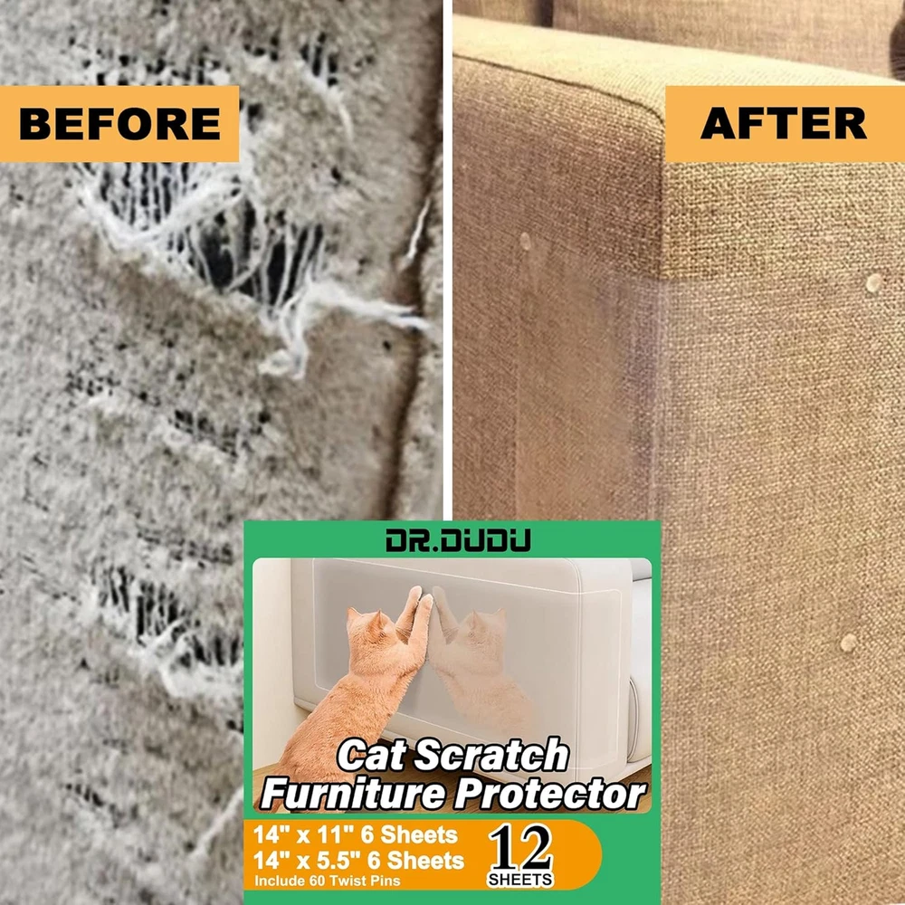 Store New Arrivals Add to Favorite View Feedback Contact Cat Scratch Furniture Protector, Clear Couch Corner Protectors for Indoor Cats, anti Scratch Deterrent Sticky Tape from Cat Scratching (12 Pack + 60 Twist Pins) Description Item model number GM-YY-BHM12 Item Dimensions LxWxH 14 x 11 x 1 inches Color Clear Product Dimensions 14"L x 11"W x 1"H Material Plastic Country of Origin China Specific Uses for Product Scratching Item Weight 10.6 ounces Target Species Cat Number of Items 12 Target Audience Keyword Cats Model Name GM-YY-BHM12 Recommended Uses For Product Indoor Breed Recommendation Cat Specific Uses For Product Scratching Item Package Dimensions L x W x H 13.94 x 11.06 x 0.79 inches Included Components Cat Scratch Guards, Pet Couch Protectors, Twist Pins Protect Furniture & Care for Cats: While it’s hard to change a cat’s natural behavior, this scratch guard offers a better way to protect furniture. It effectively prevents cats from damaging furniture and provides a healthy entertaining space for them. Let your cats enjoy themselves while maintaining a scratch-free home environment. Flexible Design & Wide Application: Suitable for use on sofas, couches, chairs, windows, and bed corners, this cat couch protector features a unique vertical design, allowing cats to scratch anytime while preventing furniture damage. However, this product is not recommended for velvet, faux and real leather furniture. Easy Installation: Installation is simple and tool-free. Peel off the self-adhesive backing to firmly attach the couch protectors from cat scratch to your furniture's surface. It remains securely in place and is easy to remove and reuse if you rearrange your furniture, offering cost savings. High-Quality Clear Material: Made from premium clear plastic, this anti scratch furniture protector is thick and sturdy. It effectively meets cats' scratching needs while providing long-term protection for your furniture. Its unique wear and scratch resistance ensure your furniture remains pristine without compromising its beauty or overall decorative style. Package Contents: The package includes 6 Pcs XL size (14" x 11") cat scratch guards for furniture, 6 Pcs large size (14" x 5.5") pet couch protectors to deter cat scratching, and 60 twist pins for securing the protectors in place. Product Description CAT SCRATCH FURNITURE PROTECTOR This 12-piece couch corner protectors for cat set is a must-have for any home, safeguarding your furniture from scratches while catering to your cat's natural instincts. Enjoy quality time with your cats without the worry of damaged furniture! Instructions for use Clean furniture surfaces to ensure they are free of dust and oil. Remove the release paper from the back of the protective film. Place the couch protector flat on the surface of the furniture, pressing gently to ensure a firm paste. Wear resistance : High quality PVC material with excellent wear resistance, effective resistance to cat scratching. Transparent : The couch protector from cat claws is transparent design, which hardly affects the original color and texture of the furniture after pasting. Self-adhesive : The back has its own adhesive, no additional glue, can be firmly attached to the surface of the furniture. Removable : The cat scratch furniture protector can be easily removed, leaving no residual glue and no damage to the furniture surface. Safety : The material is safe and non-toxic, harmless to cats and humans. Not recommended for velvet, faux and real leather furniture. Avoid direct sunlight and sharp objects to scratch the clear cat furniture protector. If the sofa protector for cat is damaged or falls off, replace it in time. ABOUT US Welcome to Alyzaar Bazaar! We’re a family-owned business committed to exceptional customer service and quality items at unbeatable prices. Our goal is to make every customer’s experience enjoyable, and we work hard to ensure satisfaction with each purchase. At Alyzaar Bazaar, we offer a handpicked selection of products that meet our high standards for quality and value. We believe in trust and reliability, aiming to deliver excellence in every transaction. Thank you for choosing Alyzaar Bazaar. We appreciate your support and look forward to serving you with the best products and service! SHIPPING We offer free shipping to the lower 48 states and typically ship within 2 business days of payment. Please note, we do not accept P.O. Boxes and require a physical address. We strive to ensure your package arrives promptly. However, please understand that factors like weather, high postal traffic, and shipping company performance are beyond our control. RETURNS As a family business, we take pride in offering only new, high-quality products. If you receive a defective or incorrect item, we accept returns within 14 days for a refund. Please contact us within 3 days of receipt to initiate the return. Buyer is responsible for return shipping costs. We appreciate your understanding and support as we strive to provide the best shopping experience. Your satisfaction is our priority, and we’re here to assist with any questions before your purchase. Thank you for choosing Alyzaar Bazaar! PAYMENT We accept PayPal. CONTACT US This page content is yet to come Please ad us to your favorite seller and visit again later Thank You CUSTOMER SATISFACTION Welcome to Alyzaar Bazaar! We’re committed to bringing you top-quality products and outstanding customer service. Your satisfaction is our highest priority, and we’d love to hear about your experience—please share your feedback after your purchase. Your support and insights help us improve and keep offering excellent products. Thank you for choosing Alyzaar Bazaar!