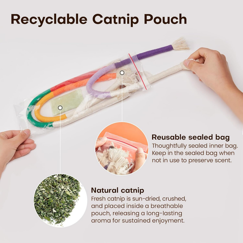 πΎ Cat Chew Ropes Toy Set with Natural Catnip (3Pcs, 19.5") β Safe Teeth Cleaning & Interactive Play | California eShop Keep your cat happy, active, and healthy! The California eShop Cat Chew Ropes Toy Set is designed to provide endless fun while improving your catβs dental hygiene. Made from soft, natural materials and infused with refillable catnip, these ropes make playtime exciting and beneficial for every feline friend. β Key Features Teething & Dental Care: Promotes clean teeth and fresh breath while helping reduce plaque buildup β turning dental hygiene into playtime fun! Refillable Natural Catnip: Comes with an included catnip bag that releases a calming, irresistible aroma to keep your kitty engaged and relaxed. Encourages Active Play: Soft textures and tassels inspire energetic activity and self-play, keeping cats active, fit, and mentally stimulated. Quiet & Peaceful Fun: Designed for silent play, perfect for nighttime entertainment without disturbing your sleep. Safe & Eco-Friendly: Made from 100% organic cotton rope with no metal wire β gentle on gums and completely safe for kittens and adult cats alike. π Product Specifications Size: 19.5 inches Material: Organic cotton rope + natural catnip Set Includes: 3 Cat Chew Ropes + 1 Refillable Catnip Bag Suitable for: Kittens and cats of all breeds π± Benefits for Your Cat Reduces stress and anxiety through playful chewing Supports dental health and teething comfort Encourages solo play and physical activity Provides mental stimulation and relaxation π Shipping All orders are shipped within 2 business days . Estimated delivery time is 5β7 business days , depending on your location. We carefully package each order to ensure safe delivery. π Returns & Refunds We offer a 30-day return policy . Items must be in new, unused condition with original packaging. For defective or damaged items, contact us for a replacement or full refund β no hassle, no stress. π¬ Customer Support Your satisfaction matters to us. If you have any questions or concerns, reach out through eBay messages β our California eShop support team responds within 24 hours. πͺ About California eShop Welcome to California eShop β your trusted destination for quality pet care, home, and lifestyle products. We pride ourselves on fast shipping, responsive service, and exceptional value in every item we sell. Fast & reliable U.S. shipping Carefully selected, high-quality products Friendly and professional customer service Β© California eShop β All rights reserved. Product names are for identification only. Always supervise your pet during play. Replace toys if worn or damaged.