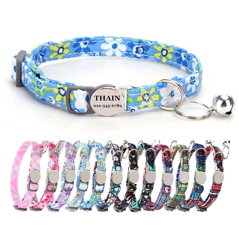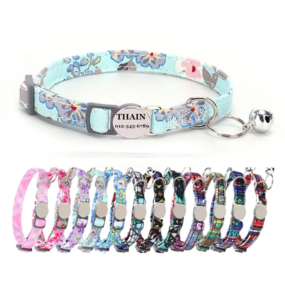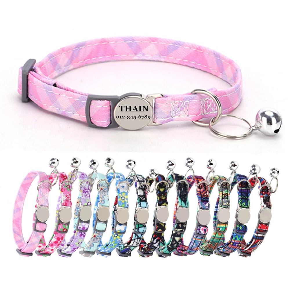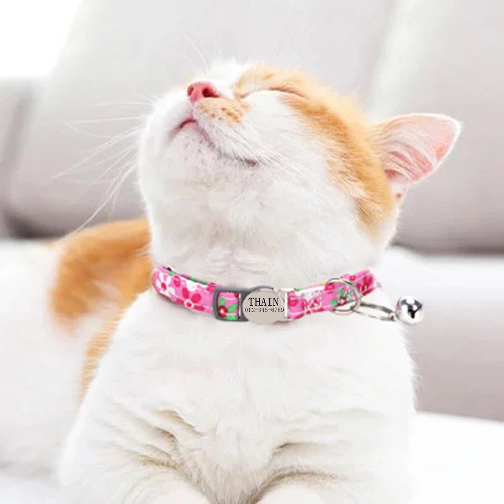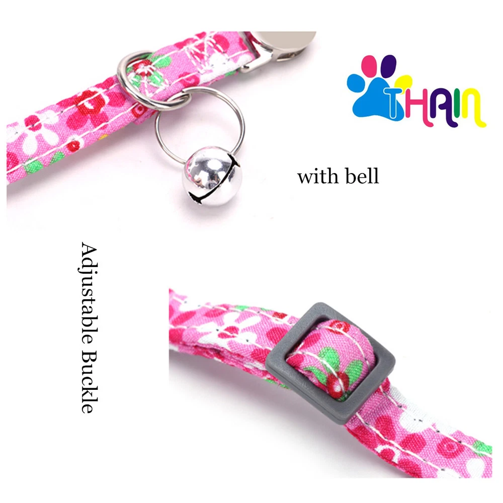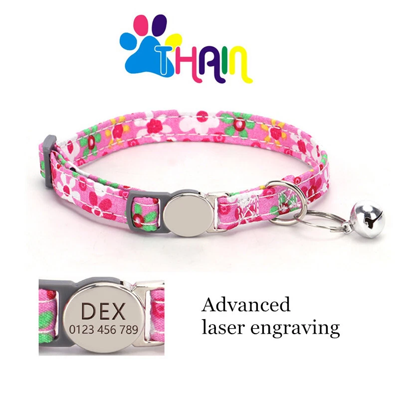 Product Name: THAIN Cat Collar Personalized with Bell-Custom Cat Collar Engraved nameplate with Name and Phone,Adjustable for Cats and Kitten Material: Nylon+ Half Metal Buckle Size: S (7"-11")(18-28cm) How to Order Please write engraving details in box at the top of listing page. Product Features: ★ 【 Adjustable Size 】 0.39 inch width,neck adjustable is 7 inch to 11 inch(18 to 28cm),adjustable design makes it fit most cat from teenager to senior, even good for other small pets in similar size; Please confirm the size before purchase ★ 【 Half Metal Buckle 】 Half Metal Buckle can be engraved words, quick release is easy for you to put on and off. ★ 【 Material 】 Made of durable nylon with printing pattern, The nylon webbing has smooth sewed edges. Great for almost all indoor cats and small puppy dogs. ★ 【 Multiple flower patterns 】 There are different 16 multiple patterns to choose, flower, plaid, Green Camo and so on ★ 【 No More Noise 】 The half metal buckle is made of stainless steel but lightweight. Compared with hanging tags, it will never get caught somewhere and great for quiet cats, no more noise to hite the bowl when eat or drink. Metal Buckle where we will engrave the pet's name and phone number or address Laser engraving makes words are clear, keeps pet's information engraved permanent. Note: For engraved words,please send us a message as below: Line 1: pet's name Line 2: phone number Smaple: Line 1: Bella Line 2: 012-345-6789 How to choose the right size? Measurement Tips: Please use a soft ruler around your Cat's neck, to measure the surrounding of it. Please don't make it too tight. Better leave a space that can put 2 fingers. So your puppy may feel more comfortable. Package include: 1 pcs pet collar Shipping: 1.Items will be sent out in 24-48 hours on payment received from Monday to Saturday. Orders during weekends and holidays will be posted in the following working day. 2.it usually will take 15-20 business days to arrive by SPEEDPAK. 3.Please make sure your shipping address and the order information is correct before placing an order. We will not be responsible for item loss due to wrong or unknown address. 4.International buyers are responsible for duties and customs fees. Return Policy & Warranty: 1. In our store, you will enjoy 30 days return/refund guarantee (Excluding misuse of the item and damaged item). 2. If the item you received is faulty, damaged or incorrect, or any further problems, you can return it for replacement or refund, please contact our customer service on eBay within 30 days from item received. 3.For damaged items on arrival, please contact us immediately, sending us an email with a photo is preferred. We will offer solutions to such cases. Full refund or replacement will be guaranteed. Contact us: Customer satisfaction is very important to us, our goal is to earn 5 star positive feedback on every sale! We would appreciate the chance to correct any problems before posting anything other than 5 stars positive feedback. So if for ANY reason you are not happy, please contact us directly through “My Massage” or "Ask Seller Q". We will get back to you as soon as we are available. We are always stand-by to help for any questions or concerns.