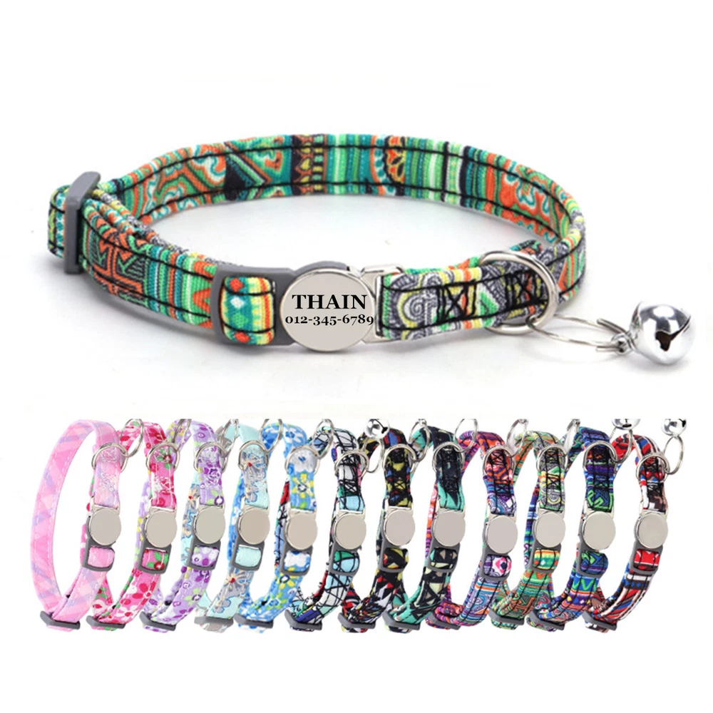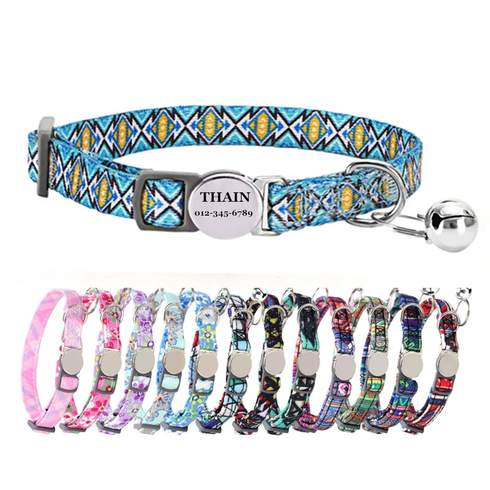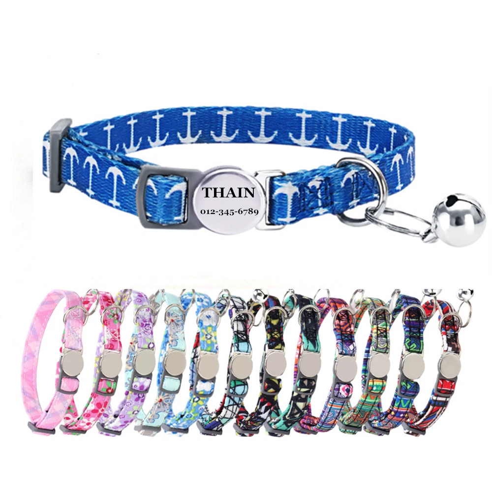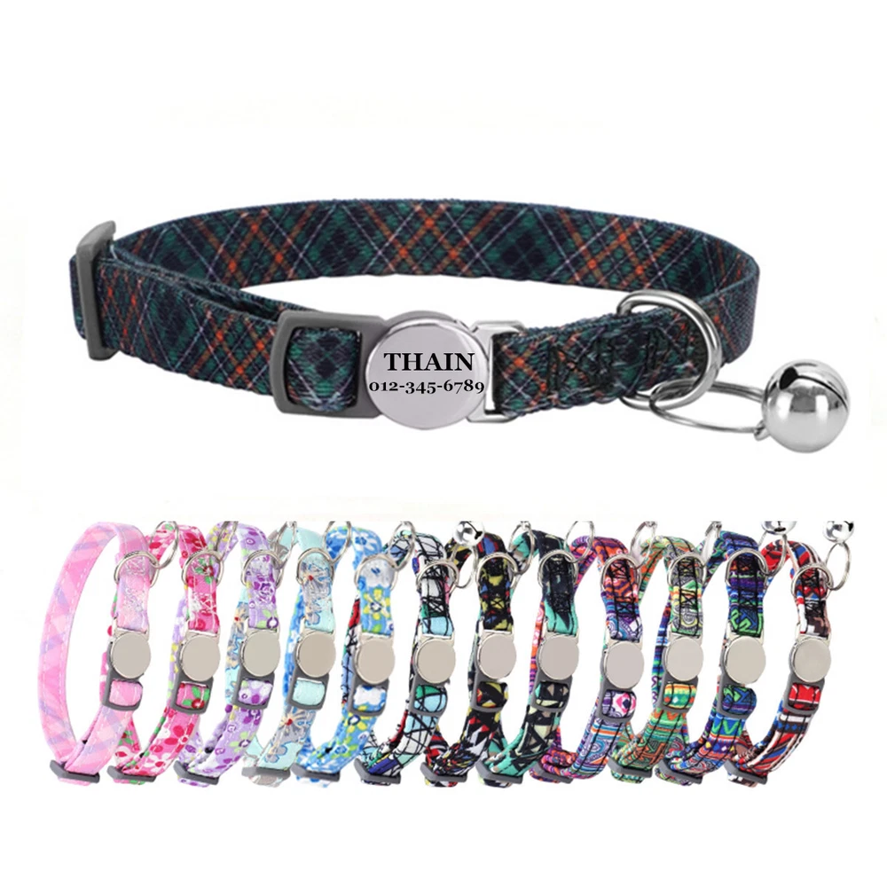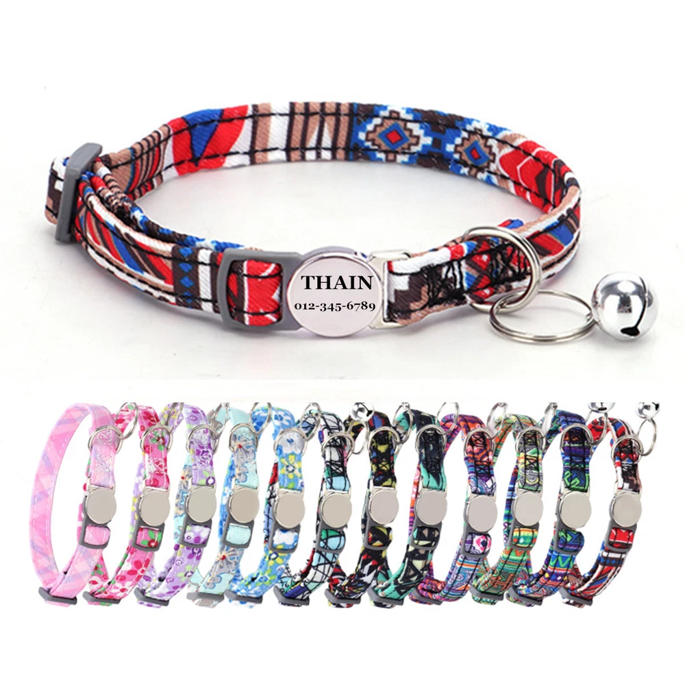 Product Name: THAIN Cat Collar Personalized with Bell-Custom Cat Collar Engraved nameplate with Name and Phone,Adjustable for Cats and Kitten Material: Nylon+ Half Metal Buckle Size: S (7"-11")(18-28cm) How to Order Please write engraving details in box at the top of listing page. Product Features: ★ 【 Adjustable Size 】 0.39 inch width,neck adjustable is 7 inch to 11 inch(18 to 28cm),adjustable design makes it fit most cat from teenager to senior, even good for other small pets in similar size; Please confirm the size before purchase ★ 【 Half Metal Buckle 】 Half Metal Buckle can be engraved words, quick release is easy for you to put on and off. ★ 【 Material 】 Made of durable nylon with printing pattern, The nylon webbing has smooth sewed edges. Great for almost all indoor cats and small puppy dogs. ★ 【 Multiple flower patterns 】 There are different 16 multiple patterns to choose, flower, plaid, Green Camo and so on ★ 【 No More Noise 】 The half metal buckle is made of stainless steel but lightweight. Compared with hanging tags, it will never get caught somewhere and great for quiet cats, no more noise to hite the bowl when eat or drink. Metal Buckle where we will engrave the pet's name and phone number or address Laser engraving makes words are clear, keeps pet's information engraved permanent. Note: For engraved words,please send us a message as below: Line 1: pet's name Line 2: phone number Smaple: Line 1: Bella Line 2: 012-345-6789 How to choose the right size? Measurement Tips: Please use a soft ruler around your Cat's neck, to measure the surrounding of it. Please don't make it too tight. Better leave a space that can put 2 fingers. So your puppy may feel more comfortable. Package include: 1 pcs pet collar Shipping: 1.Items will be sent out in 24-48 hours on payment received from Monday to Saturday. Orders during weekends and holidays will be posted in the following working day. 2.it usually will take 15-20 business days to arrive by SPEEDPAK. 3.Please make sure your shipping address and the order information is correct before placing an order. We will not be responsible for item loss due to wrong or unknown address. 4.International buyers are responsible for duties and customs fees. Return Policy & Warranty: 1. In our store, you will enjoy 30 days return/refund guarantee (Excluding misuse of the item and damaged item). 2. If the item you received is faulty, damaged or incorrect, or any further problems, you can return it for replacement or refund, please contact our customer service on eBay within 30 days from item received. 3.For damaged items on arrival, please contact us immediately, sending us an email with a photo is preferred. We will offer solutions to such cases. Full refund or replacement will be guaranteed. Contact us: Customer satisfaction is very important to us, our goal is to earn 5 star positive feedback on every sale! We would appreciate the chance to correct any problems before posting anything other than 5 stars positive feedback. So if for ANY reason you are not happy, please contact us directly through “My Massage” or "Ask Seller Q". We will get back to you as soon as we are available. We are always stand-by to help for any questions or concerns.