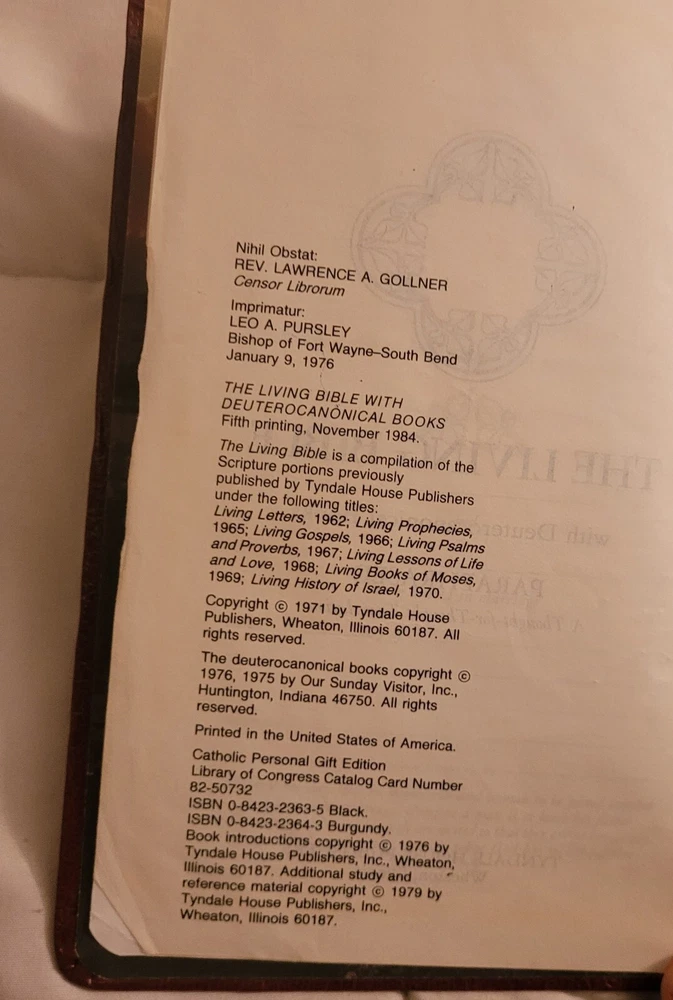Catholic Edition The Living Bible Red Letter Concordance Imitation Leather 1984