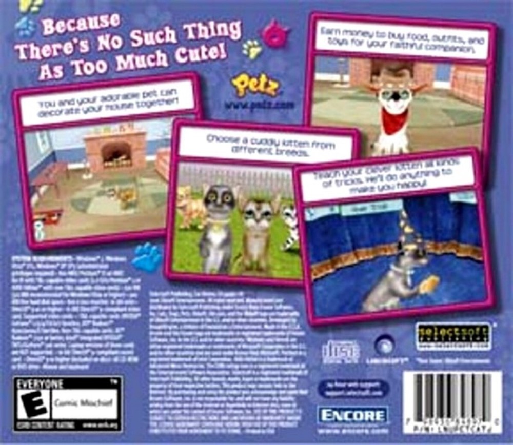 Current Discount Offers Serving the eBay Community Worldwide Since 1997! Petz Catz UbiSoft Because there’s no such thing as too much cute! You and your adorable pet can decorate your house together! Choose a cuddly kitten from different breeds. Teach your clever kitten all kinds of tricks. He’ll do anything to make you happy! Earn money to buy food, outfits, and toys for your faithful companion. System Compatibility Tested Works With Windows XP, Vista, 7, 8, 10. DVD-ROM Drive for "Pet Horsez 2". Product Condition / Packaging Product Notes Final sale on this clearance / liquidation item. May not be exchanged, returned, nor refunded. Outside USA : Product compatibility untested outside USA. Please see below. Shipping Ships in secure, protective packaging with delivery tracking. Orders ship first-in first out, usually early in posted handling time period. Please see "Shipping & Payments" section above for shipping services, with rates and estimated delivery dates. For any question, including special handling request, desired expedited shipping services (and rates) not shown or other, please eBay Message. Any current/subsequent contact or Paypal-payment note may not be seen prior to order shipment. Outside USA: Each bundled Item (pre-identified as a "Bundle" in listing) counts as only a single item to minimize shipping charge Payment We accept payment through eBay Managed Payments system. eBay system will automatically charge sales tax as applicable. Service / Support We are here to service all pre- and post-purchase questions. Returns always accepted within 30-days for any reason; buyer responsible for return delivery. Per eBay guidelines, please eBay Message us prior to posting any feedback other than positive, or taking other action, to provide us opportunity to resolve any issue. We do not claim to be product experts for each of 1000s software & DVD titles offered, but with 20+ years experience, may be able to help troubleshoot installation. (For post-installation usage help, please refer to on-screen documentation usually accessible within software, or in "help" file, else possibly available on Internet). Outside USA: Though compatibiilty tested within USA only, orders regularly fulfilled outside USA with rarely any reported issue. Our business hours: 9am - 6pm Pacific Time USA, Monday - Friday (except US Postal Holidays). eBay Message us (cyber-deals) by clicking on either: "Contact Seller" link in your order for this item in your Purchase History - (Best Method) "Ask A Question" link below in the Questions & Answers section on this listing page