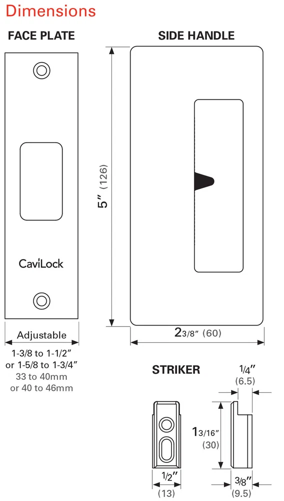 Powered by Frooition All Categories Cavilock CL205D-PR-34 CL200 Magnetic Privacy Pocket Door Set with Snib and Emergency Release for 1-3/4 Inch Door Thickness Overview Item Description Features: All metal construction designed for lasting use Reversible for left or right handed pocket doors Configured with a snib and emergency release Magnetic latching system ensures a smooth locking action Includes all necessary mounting hardware and instructions Does not meet standards of the American with Disabilities Act (ADA) Cavilock offers a 2 Year Limited Warranty to the original user Key Product Attributes: Pocket Door Privacy Function: CaviLock privacy pocket door pulls have a slide locking feature on the interior with an emergency override on the exterior and are perfect for sliding doors where privacy is desired without the risk of lockout. Specifications: Door Thickness: 1-3/4" Handing: Reversible, Left or Right Height: 5" Width: 2-3/8" Cutout Height: 4-3/4" Cutout Depth: 2-1/4" Material: Brass, Zinc Product Variations: CL205D-PR-34 (This Model): Privacy with Snib and Emergency Release for 1-3/4" Door Thickness CL205D-PR-38: Privacy for with Snib and Emergency Release 1-3/8" Door Thickness Why Choose BuildInc? OUR PROMISE TO YOU About Us At Build, we promise to provide the best selection we can, most competitive pricing, and unmatched customer service. Our store has quality home improvement products from trusted manufacturers like Moen, American Standard, Delta, Kraus, Kichler, Progress Lighting, Schlage, Kwikset, Baldwin, Broan, NuTone, Air King, and Rev-A-Shelf. With over 200,000 home improvement products for you to choose from, we have just what you need to get your project done. Fast & Free Shipping We promise to make it our priority to get you your items as fast as we can. We ship from 440 warehouses around the country, ensuring that your product will get to you as soon as possible. We know you're eager to get your hands on your new purchase, we would be too. As a bonus, most items ship for free. Returns We are happy to accept returns of unused or defective items for a refund within 30 days from the date of delivery. For returns outside 30 days, please contact our Customer Service team to go over our options. For full details, please view the Shipping and Payments tab above. To initiate a return simply go to the eBay Returns Portal and submit a return request. We ask that all items be returned with all original components via a traceable method. Once your return is received and processed, we will quickly get your refund or replacement issued. If for any reason you are unsatisfied with your purchase or for product or warranty questions, please contact Customer Service team for assistance. More Items! View more great items! About Us | Shipping | Returns | Contact Us | FAQ | Collections | Special Offers! Powered by Frooition Frooition Frooition | No-js Template | eBay design, eBay store design, eBay shop design, eBay template design, eBay listing design (ver:froo_no_js) This listing is currently undergoing maintenance, we apologize for any inconvenience caused.