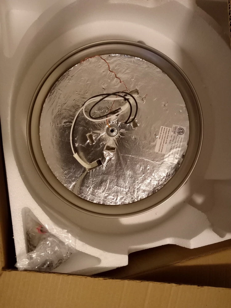 Four (4) Dimple flush mount ceiling lights. Brushed nickel and frosted glass. Removed from new house. Each one is being sold for $1.99 on AUCTION. You can BUY IT NOW 1 for $2.59. 2 ceiling lights will be $5.18. 3 ceiling lights will be $7.77. 4 ceiling lights will be $10.36. Can be shipped 2 in a box. Thanks for looking.