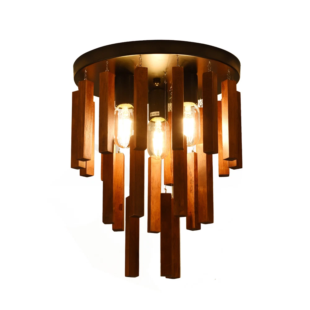 Ceiling Light Fixture Rustic Wooden Chandelier Retro Ceiling Semi Flush Mount Description This ceiling light uses solid wood and iron material, making it anti-rust , high-strength, and long-lasting. With wood forming the lampshade in a beautiful meteor form, it will cast a warm shimmering reflection on the ceiling when on, adding romance to your home. Key Features High-quality Material: This ceiling light adopts an iron chassis and solid wood lampshade, making it anti-rust , corrosion-resistant , and high-strength. Beautiful Lighting Effect: Applying evenly distributed rectangular wood, this ceiling light casts gorgeous rays on the ceiling to make a beautiful lighting effect and create a warm&romantic atmosphere in your living room. Retro Appearance: With a unique meteor form design and a classic round chassis, this ceiling light looks retro industrial, adding beauty and vintage elements to your room. Wide Compatibility: Three standard E26 bases make you choose different style bulbs such as LED, incandescent, and halogen to create different lighting effects. Dimmable: It is fully dimmable when used with dimmable bulbs and compatible dimming switches. Easy to Install : You can assemble the wood lampshade easily with the hooks. Then you just need to connect the wire reserved on the ceiling. And there is an English manual for your reference. Easy to Clean: Due to the painting surface treatment, you can easily wipe the dirt from it with a wet cloth. Ideal Gift: Thanks to its exquisite design, elegant appearance, and beautiful lighting effect, you can choose this ceiling light as a gift for housewarming to your friends. Protective Package: To prevent the product from being damaged and bumped during transportation, we packed it with pearl cotton to protect your products to the maximum extent possible. Details Hooks&Piercings: The piercings on the chassis&wood lampshade and hooks allow for convenient assembly. Open Bottom: With the open design, you just screw the E26 bulbs you want into the lamp holder. Stable Chassis: The round iron chassis with a nut in the middle ensures stable support for the light body and present classic beauty. Stainless Steel Wire: The solid wood is hung by stainless steel wires, making it sturdy. Application It is ideal for kitchens, hallways, living rooms, bedrooms, balconies, bars, aisles, foyers, hotels, restaurants, corridors, cafes, dining rooms, children's rooms, libraries, and other indoors. And its applicable area is 53-107.6ft². Specifications Model: 8923 Color: Black Material: Solid Wood, Metal Processes: Painting, Grinding Style: Retro Shape: Round Mounting Type: Ceiling Mount Indoor/Outdoor Usage: Indoor Specific Uses: Home Special Feature: Dimmable (Depending on the Bulbs you Choose) Light Fixture Form: Close to Ceiling Light Direction: Downlight Light Source: 3* E26 Bulbs (Not Included) Bulbs Type: LED, Incandescent, Halogen, Etc. Voltage: 110V Max. Single Bulb Power: 60W Applicable Area: 5-10m²/53-107.6ft² Chassis Thickness: 2.5cm/0.98inch Ceiling Light Height: 34cm/13.38inch Ceiling Light Diameter: 32cm/12.59inch Package Included 1* Ceiling Light 1* English Manual Notes Please check the product size before ordering to make sure it fits your room. You need 3 E26 bulbs with a single bulb less than 60W (not included). Please make sure the power is cut off before installation. To ensure your safety, we recommend that two people install this ceiling light together. Please install it by someone with an electrical license if necessary. Please use it in a dry environment. It is not suitable for outdoors and bathrooms because the wood will get wet. Please read the English manual carefully before installation. Please allow the slight color difference caused by the shooting light and 1-3cm error due to manual measurement, and make sure you do not mind before you order. Payment Delivery details Terms of sales About us Contact us Payment We accept ebay payment 。 Fees such as import duties, taxes are not included in the item price or shipping costs. These charges are the buyer's responsibility. Delivery details Shipping: 2-9 working days to: USA Terms of sales We maintain high standards of excellence and strive for hundred percent customer satisfaction. Feedback is very important to us. We hope that you contact us immediately before you give neutral or negative feedback, so that we can address your concerns. It is impossible to address issues if we do not know about them! About us Your satis faction is our ultimate goal. We work hard to earn your trust and future business. Our certified technicians have tested each item before shipping. The unit comes with 1 year limited warranty on all manufacturing defects. a) If you receive a defective item, you may return it or ask for a discount. Please contact us within 14 days after you receive the package. b) What you returned must be intact and in its original packaging as re? u. Customer is responsible for shipping costs of the returned item. c) We will cover the cost of shipping back t with the shipping rate indicated in the registration page. We will send you a new unit or refund the full payment you paid. Thank you. Contact us Business Hour Business Hour: Monday To Friday: 8:30 AM to 5:00 PM (Beijing China time) Due to time zones, our reply to your questions may not be immediately. But within above working time, we will reply your email within 24 hours. If it's non-workdays, please kindly be patient and wait till Monday. Please contact us with ebay message. Please feel free to contact us if you have any questions. Monday To Friday: 8:30 AM to 5:00 PM (Beijing China time) Due to time zones, our reply to your questions may not be immediately. But within above working time, we will reply your email within 24 hours. If it's non-workdays, please kindly be patient and wait till Monday. Please contact us with ebay message. Please feel free to contact us if you have any questions.