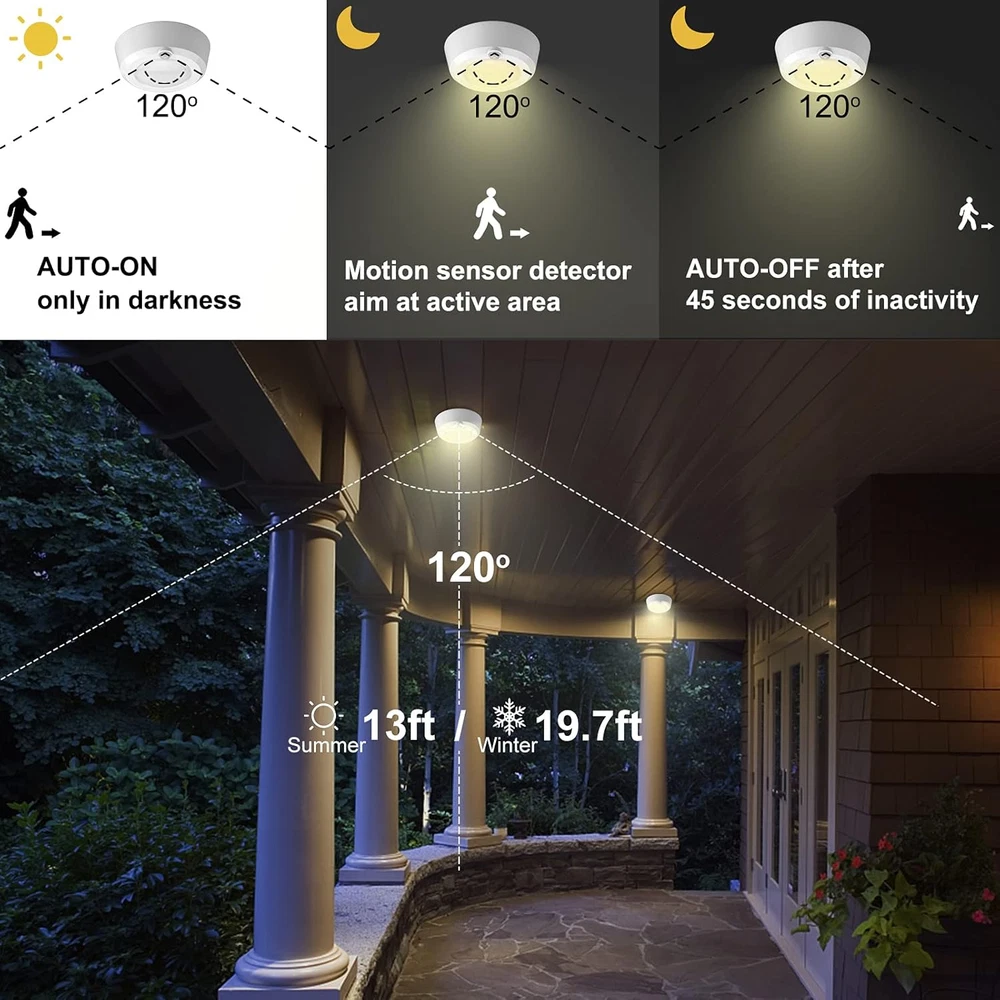 Store New Arrivals Add to Favorite View Feedback Contact Ceiling Light with Motion Sensor, Battery Operated Led Shower Light, Wireless Overhead Lighting for Hall Corridor Corner Stairs Closet Pantry Laundry Room, 300 LMS Description Light Source Type LED Style Modern Number of Items 1 Power Source DC Pattern Motion Sensor Number of Light Sources 1 Control Method Remote Batteries Included? No Average Battery Life 30000 Hours Lighting Method Downlight Controller Type Remote Control Unit Count 1 Count Room Type Pantry, Kids Room, Stairway, Garage, Kitchen, Bathroom, Basement, Hallway Finish Brush Assembly Required No Material Plastic Installation Type Flush Mount Finish Type Brush Specific Uses For Product Garage Included Components Screws, Motion Sensor Light, User Manual Indoor/Outdoor Usage Indoor Brightness 300 Lumen Light Color warm white Batteries Required? No Item Weight 8 ounces Light fixture form Ceiling Special Features Battery Operated, Cordless, Motion Sensor Special Feature Battery Operated, Cordless, Motion Sensor Shade Color White Mounting Type Surface,Wall Mount Color Motion Wattage 3 watts Shape Round Voltage 4.5 Volts (DC) Plug Format A- US style Recommended Uses For Product Indoor hallway light/stair light/bathroom ceiling light/cabinet light Shade Material Plastic Fixture Type Non Removable Product Dimensions 5.6"L x 5.6"W x 2.2"H Size 5.6 Inches [Motion Sensor Shower Light]—Auto ON only in full darkness when motion is detected within 9.8 feet, auto-off after 45 seconds if no motion detected. Perfect for ceiling shower laundry hallway overlighting. [Battery Powered Ceiling Light]—Powered by 3 D batteries (not included), can provide 620 days of light with an average use of 8 activation per day. Will lase more time than other ceiling light. [ Super Bright Hallway Light]—Up to 300 Lumens super bright light, 3000K warm white, bright enough for lighting up dark corners. [Easy Installation Pantry Light]—Simple to mount with screws (included), you can install it to any surface of wood or wall. [Multi-Purpose Indoor Light]—Wise choice for your closet, stairway, hallway, basement, shed, pantry, shower, bathroom, hall, kitchen, under cabinet, counter, corridor, garage, launtry room, etc. Product Description BIGMONAT Cordless Ceiling Light with Motion Sensor, Battery Operated Led Motion Shower Light Super Bright for Shower Hall Corridor Conner * 300 Lumens, 3000K warm white light, 3W, DC 4.5V, lifespan is 80,000 hours * (AUTO ON/OFF), Light will turn OFF after 45 seconds if no motion is detected in darkness. * Product includes an automatic night sensor that allows Motion Sensor to operate only at night or in darkness. It detects motion within a distance of 11.5 feet (3.5M). * Simple to install with screws. * Powered by 3D-Cell batteries (not included) * Use anywhere like elder's room, kid's room, bathroom, hallway, garage, etc. Packing List - 1 x Motion sensor light - 2 x Screw - 1 x User Manual By daylight The battery ceiling light will be off by daylight, keep more energy saving. At night when motion is detected Auto-on only in darkness. The ceiling light will turn ON automatically when motion is detected. The red indicator light will flash when the Motion Sensor is on working. At night when no motion is detected The light will also shut OFF automatically after 45 seconds when no motion is detected 3000K Warm White Light The LED ceiling light has 3000K warm white light. It fits for Closet, Entrance, Hallway, Stair, Shed,Garage,Porch,anywhere high place need supplemental light. Sensor Range The motion sensor detector aim at active area is 120°. It detects motion up to 13 feet (4M) in summer & 19.7 feet (6M) in winter of the motion sensor. Battery Operated Powered by 3D-Cell batteries (not included). The battery ceiling light provides 620 days of light with an average use of 8 activation per day. Widely Used Doorway/Corridor Shower Tool room/Hallway ABOUT US We offer the best prices around on high quality products. Our E-store includes media such as books, movies, music and games while offering electronics, toys, sporting apparel, clothing, tools, general home, garden items and more. SHIPPING We are always working hard to ensure your package arrives as soon as possible. Please understand that some factors like weather, high postal traffic, and the performance of shipping companies are outside of our control. We offer free shipping to the lower 48 states and ship within 2 business days of payment, usually sooner. We do not accept P.O. Boxes. Please provide a physical address. For shipping outside of the continental USA, we only use eBay's Global Shipping Program.The item is shipped to KY and then sent to the rest of the world. International customers are responsible for all duties and taxes. Continue to check out in order to calculate costs for shipping the item to your country. Messages regarding eBay's Global Shipping Program MUST be directed at eBay EXCLUSIVELY. RETURNS We offer a 30-Day Return Policy on items which you are not completely satisfied with. You have the option for a full-refund or an exchange of the item. No returns are available on items shipped outside of the USA. PAYMENT We accept PayPal. CONTACT US This page content is yet to come Please ad us to your favorite seller and visit again later Thank You CUSTOMER SATISFACTION We try our very best to make sure every customer is completely satisfied. If there's a problem, message us! We're happy to help. WE ACCEPT Copyright © 2021 AutoDS. | All Rights Reserved