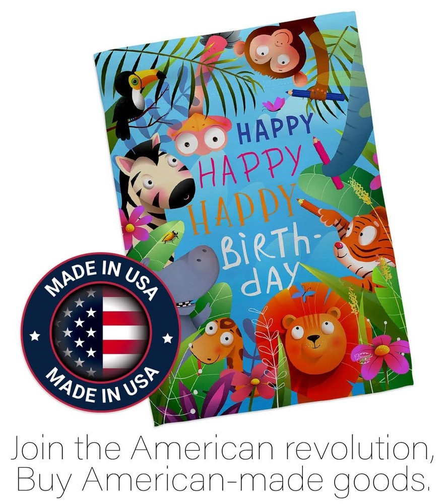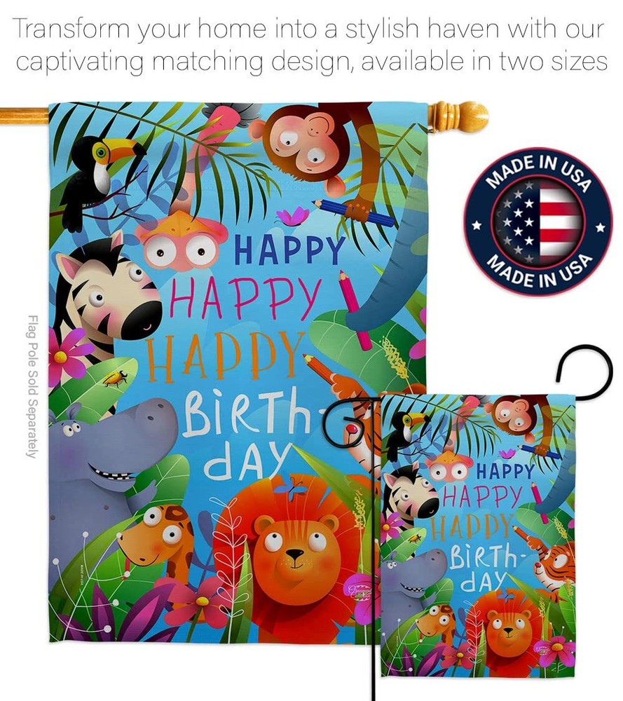 PROUDLY Made In USA - Package And Product Designed In California PURCHASE WITH CONFIDENCE - From 's US Authorized Resellers MADE OF DURABLE - 100% Thick Polyester Fabric construction helps resist the wear and tear from frequent use TEXT Readable Both Sides - Garden Flag Set Double-Sided Print DURABLE FLAG - Double stitching panels on multiple rows and high quality Sleeve to provide lasting strength VIBRANT COLORS - With UV-Resistant Maintains Its Colors All Season Long FEATURES - Sleeve Hanger fits standard Banner/Flagpole, Bracket, Arbors or stand Hardware Included!