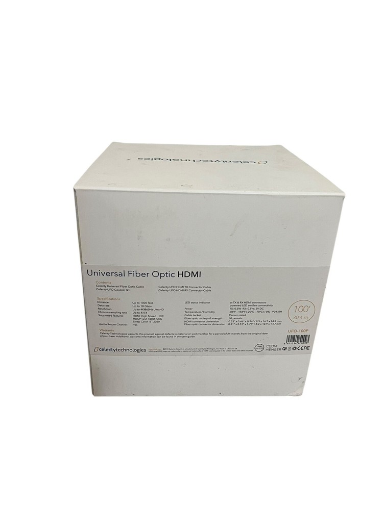 Celerity Technologies Universal Fiber Optic HDMI cable 100 feet long B2. Condition is New. Shipped with USPS Ground Advantage.