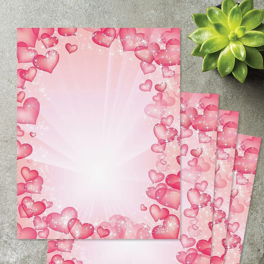 Celestial Hearts Letter Stationery - Set of 25 Valentines Day Themed Paper 8