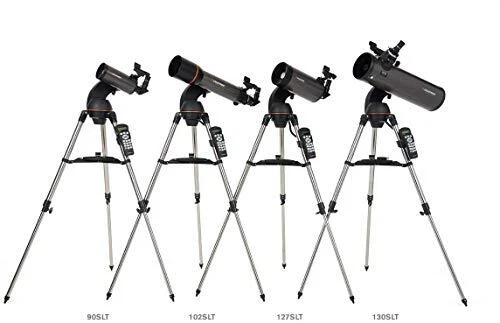 Building on the popularity of our NexStar 114SLT telescope, the 130SLT by Celestron inspires us to go bigger, with 30% more light-gathering power than our 114mm telescope. The Celestron NexStar 130SLT is a computerized telescope that offers a database of more than 4,000 stars, galaxies, nebulae, and more. The telescope locates your object with pinpoint accuracy and tracks it. At the heart of the telescope’s Newtonian reflector optical design, a large 130mm primary mirror gives fully color-corrected views ideal for astronomical use. The 130SLT comes with a fully computerized NexStar+ hand control. The computerized hand control gives you the ability to automatically slew to any of its 4,000+ objects, including over 600 galaxies, 300 clusters, and dozens of beautiful binary stars. This telescope for adults and kids to be used together is ideal for weekend camping trips or excursions to dark sky sites. Its compact form factor makes it easy to transport and assemble just about anywhere. With its pre-assembled, adjustable steel tripod, the NexStar 130SLT can be up and ready to use in a matter of minutes. Our SkyAlign alignment technology and the included StarPointer Finderscope with a red LED make aligning a breeze. Simply center any three bright objects in the eyepiece and the NexStar SLT aligns to the night sky, ready to locate thousands of objects. The NexStar 130SLT Computerized GoTo Telescope also includes a free download of our Starry Night Basic Edition astronomy software for an interactive sky simulation. The power of this computerized telescope allows you to view the details of the lunar surface, the rings of Saturn, the polar ice caps on Mars, the cloud belts on Jupiter, and a number of the Messier objects, such as the globular cluster in Hercules (M13) or the Great Nebula in Orion (M42). Explore some of the fainter Messier objects using the additional light-gathering capabilities of the 130SLT’s five-inch primary mirror. Buy with confidence from the world’s #1 telescope brand, based in California since 1960. You’ll also receive a two-year warranty and unlimited access to technical support from our team of US-based experts. COMPUTERIZED STAR LOCATING TELESCOPE: The Celestron NexStar 130SLT is a computerized telescope that offers a database of more than 4,000 stars, galaxies, nebulae, and more. The telescope locates your object with pinpoint accuracy and tracks it. Compatible with 2 inch eyepieces COMPACT AND PORTABLE: This telescope for adults and kids to be used together is ideal for weekend camping trips or excursions to dark sky sites. Its compact form factor makes it easy to transport and assemble just about anywhere. NEWTONIAN REFLECTOR OPTICAL DESIGN: The NexStar 130SLT is the largest in the SLT family. The 130mm aperture gathers enough light to see our Solar System and beyond. View Saturn’s rings, Jupiter’s cloud bands, and the Moon in brilliant detail. BONUS FREE STARRY NIGHT SOFTWARE: The NexStar 130SLT Computerized Telescope includes a FREE download of one of the top consumer rated astronomy software programs for an interactive sky simulation. UNBEATABLE WARRANTY AND CUSTOMER SUPPORT: Buy with confidence from the world’s #1 telescope brand, based in California since 1960. You’ll also receive a two-year warranty and unlimited access to technical support from our team of US-based experts.