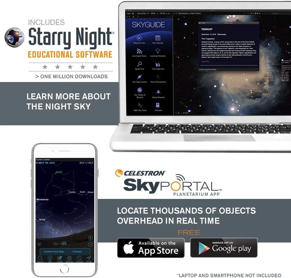 Nexstar computerized telescope: The NexStar 8SE Computerized Telescope features Celestron’s iconic orange tube design with updated technology and the latest features for amazing stargazing for beginners and experienced observers. 8-Inch aperture: The 8-inch primary mirror in this Schmidt-Cassegrain telescope for adults and kids to be used together packs enough light-gathering ability to observe the best that our Solar System has to offer, while retaining a compact form factor. Compatible with starsense technology, Wifi Fully-automated go to mount: Featuring a database of more than 40,000 celestial objects, the go to mount built into our telescopes for astronomy beginners automatically locates and tracks objects for you. Easy to assemble and break down: The single fork arm design and sturdy steel tripod all assemble and break down from separate components for easy transportation. SkyAlign technology gets your telescope aligned and ready in minutes.