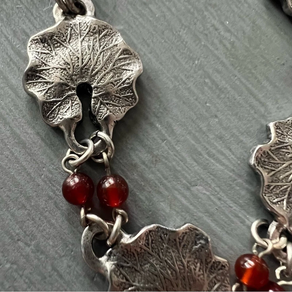 Celia Landman Vintage Leaf & Red Beads Bracelet Preowned