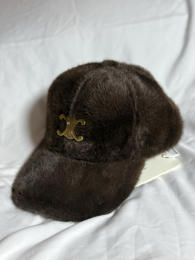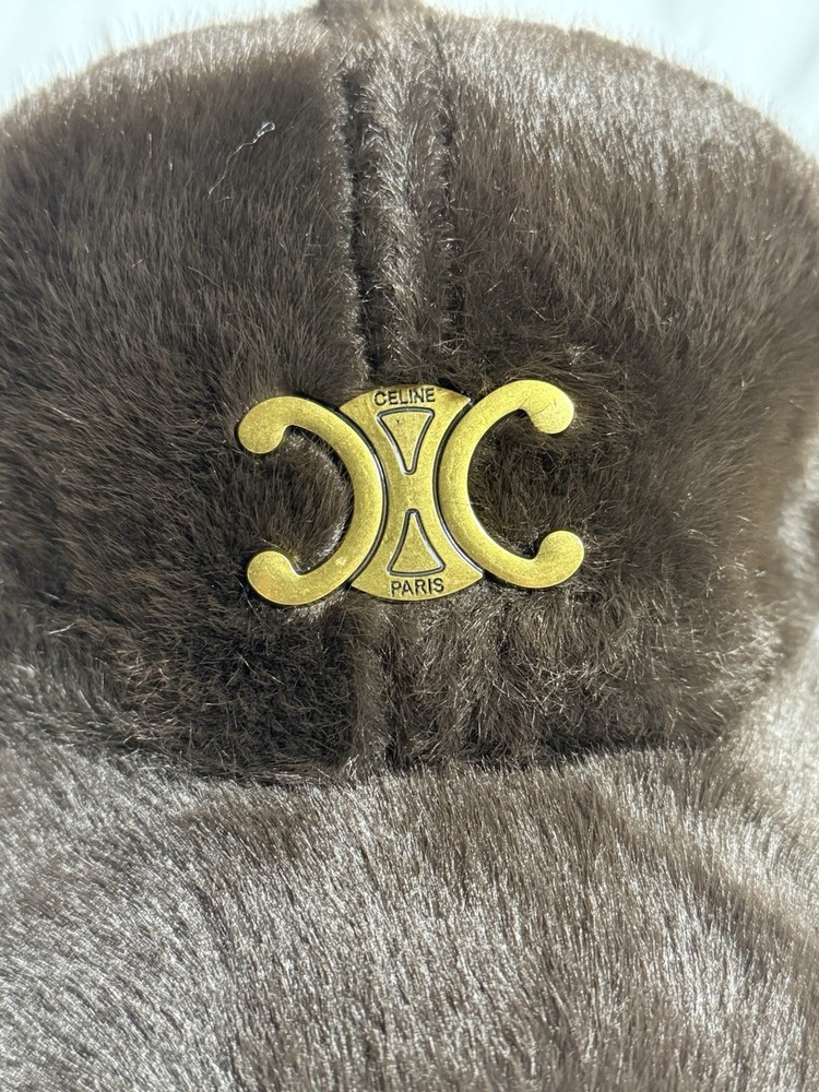 The Celine Faux Fur Baseball Cap is a stylish and luxurious accessory for women. Made with brown fur and featuring a vintage gold hardware Triumph logo accent, this limited edition baseball cap is perfect for casual occasions. The size is medium, making it a versatile piece that can complement a variety of outfits. The brand's reputation for high-quality design and attention to detail ensures that this cap is a must-have for fashion-forward individuals looking to add a touch of elegance to their look.