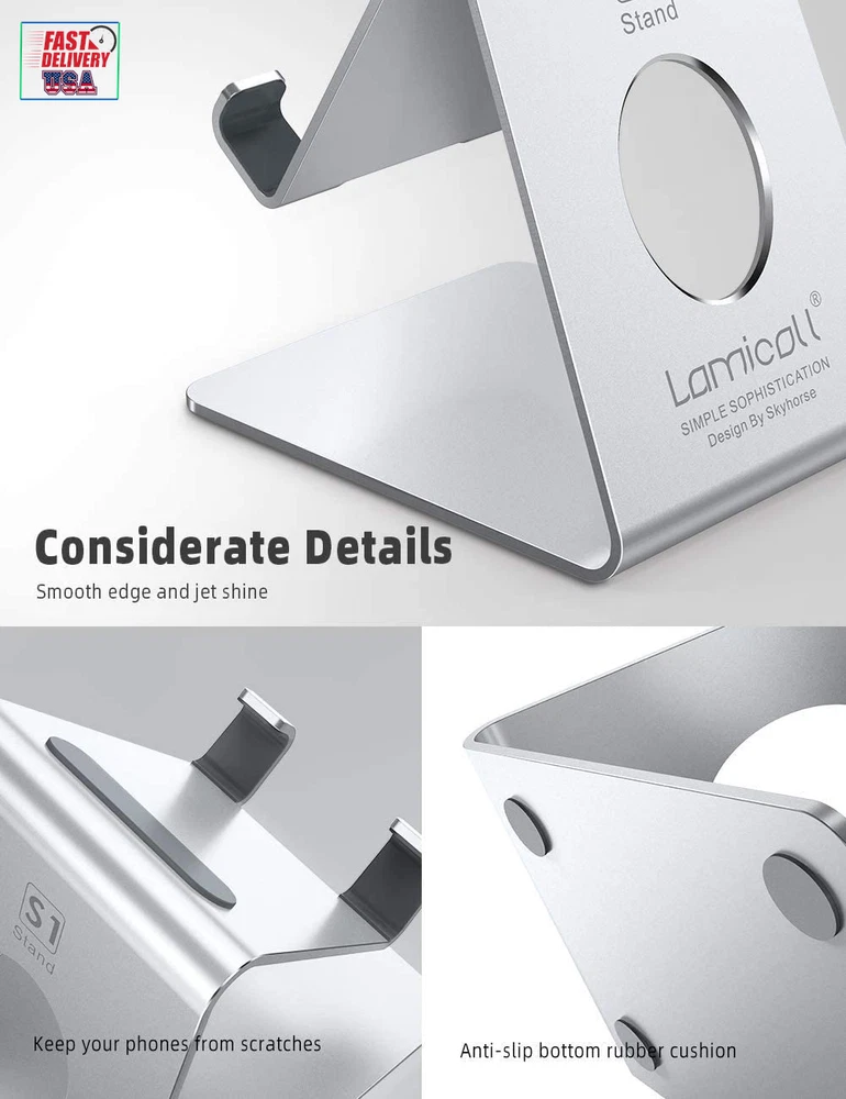 Store New Arrivals Add to Favorite View Feedback Contact Cell Phone Stand, Desk Phone Holder Cradle, Compatible with Phone 12 Mini 11 Pro Xs Max XR X 8 7 6 plus SE, All Smartphones Charging Dock, Office Desktop Accessories - Silver Description Item model number S-CA-S Color Sliver Is Discontinued By Manufacturer No Product Dimensions 3.74 x 2.95 x 3.35 inches Country of Origin China Compatible Devices function(f) {var _np=(window.P._namespace("DetailPageProductOverviewTemplatesJava"));if(_np.guardFatal){_np.guardFatal(f)(_np);}else{f(_np);}}(function(P) { P.when('A').execute(function(A){ A.on('a:truncate:po-attribute-truncate-3:updated', function(data) { var isTruncated = !data.truncateInstance.getIfTextFits(); var seeMoreElement = document.getElementById('po-attribute-see-more-id-3'); if(seeMoreElement) { seeMoreElement.style.display = isTruncated ? '' : 'none'; } }) }); })); Apple iPhone 15, iPhone 15 Plus, iPhone 15 pro, iPhone 15 pro max,14 13 12 11, 11 Pro, 11 Pro Max, Xs, Xs Max, XR, X, 8, 7, 7 Plus, 6s, 6s Plus, 6, 6 plus, 5s, 5, Galaxy s22 s21 +, s21 ultra, s20, s10+, s10, s9, s8, a71, a52, a51, a32, a22, a12, a10e, a02s, 10e, note 20 ultra, note 10, 9, lg stylo 6, 5, k51, Velvet 5G, v60, c1, lenovo legion 5 5i 7 7i pro duel 2,Motorola one 5g ace, edge, plus, Moto g Play, google pixel 3, 3a, 4, 4a, 4 xl 5, 5a,huawei p20, p30, p40, mate 10, 20, pro, lite, Xiaomi, Nokia, Microsoft, Lumia, BlackBerry, 4-8" cellphone See more Item Weight 2.93 ounces Department PHONE STAND Form Factor stand Compatible Phone Models function(f) {var _np=(window.P._namespace("DetailPageProductOverviewTemplatesJava"));if(_np.guardFatal){_np.guardFatal(f)(_np);}else{f(_np);}}(function(P) { P.when('A').execute(function(A){ A.on('a:truncate:po-attribute-truncate-4:updated', function(data) { var isTruncated = !data.truncateInstance.getIfTextFits(); var seeMoreElement = document.getElementById('po-attribute-see-more-id-4'); if(seeMoreElement) { seeMoreElement.style.display = isTruncated ? '' : 'none'; } }) }); })); Apple iPhone 15, iPhone 15 Plus, iPhone 15 pro, iPhone 15 pro max,14 13 12 11, 11 Pro, 11 Pro Max, Xs, Xs Max, XR, X, 8, 7, 7 Plus, 6s, 6s Plus, 6, 6 plus, 5s, 5, Galaxy s22 s21 +, s21 ultra, s20, s10+, s10, s9, s8, a71, a52, a51, a32, a22, a12, a10e, a02s, 10e, note 20 ultra, note 10, 9, lg stylo 6, 5, k51, Velvet 5G, v60, c1, lenovo legion 5 5i 7 7i pro duel 2,Motorola one 5g ace, edge, plus, Moto g Play, google pixel 3, 3a, 4, 4a, 4 xl 5, 5a,huawei p20, p30, p40, mate 10, 20, pro, lite, Xiaomi, Nokia, Microsoft, Lumia, BlackBerry, 4-8" cellphone See more Wide Compatibility: This cell phone stand is compatible with all 4-8 inches smartphones in phone cases, like iPhone 13 12 mini 11 Pro XS Max XR X 8 7 6 6S Plus, Galaxy S21 Ultra, S20, S10, S9, S9 Plus, A71, A51, A11, Edge, etc. Stable and Anti-scratch: The iPhone stand is made of high-quality aluminum alloy with a nice finish. Stable and easy to watch Youtube or FaceTime. Besides, rubber non-slip pads protect the surface of your phone case and desk from scratches. Make Your Life Easier: Using this desktop phone holder at home to prop up your phone, you can better view recipes while cooking. It's also great for on your nightstand, so no more fumbling around in the morning to shut off the alarm. Suitable Viewing Angle: The phone cradle for desk provides you with a comfortable viewing angle. Put it on your office desk, and you can see at a glace incoming notifications and calls when the phone is in silent mode. Thoughtful Detail Design: A large hole in the back allows a charging cable to bend gracefully away. And the outer edge of this hole is beveled so that it will not cut into your cord — a perfect dock for your phone. Product Description The video showcases the product in use. The video guides you through product setup. The video compares multiple products. The video shows the product being unpacked. Lamicall Phone Stand Series Comparison Height Adjustable NO Height Adjustable YES Height Adjustable NO Heavy Duty Base NO Heavy Duty Base YES Heavy Duty Base NO Angle Adjustable NO Angle Adjustable YES Angle Adjustable YES Foldable NO Foldable NO Foldable YES ABOUT US We offer the best prices around on high quality products. Our E-store includes media such as books, movies, music and games while offering electronics, toys, sporting apparel, clothing, tools, general home, garden items and more. SHIPPING We are always working hard to ensure your package arrives as soon as possible. Please understand that some factors like weather, high postal traffic, and the performance of shipping companies are outside of our control. We offer free shipping to the lower 48 states and ship within 2 business days of payment, usually sooner. We do not accept P.O. Boxes. Please provide a physical address. For shipping outside of the continental USA, we only use eBay's Global Shipping Program.The item is shipped to KY and then sent to the rest of the world. International customers are responsible for all duties and taxes. Continue to check out in order to calculate costs for shipping the item to your country. Messages regarding eBay's Global Shipping Program MUST be directed at eBay EXCLUSIVELY. RETURNS We offer a 30-Day Return Policy on items which you are not completely satisfied with. You have the option for a full-refund or an exchange of the item. No returns are available on items shipped outside of the USA. PAYMENT We accept PayPal. CONTACT US This page content is yet to come Please ad us to your favorite seller and visit again later Thank You CUSTOMER SATISFACTION We try our very best to make sure every customer is completely satisfied. If there's a problem, message us! We're happy to help. WE ACCEPT Copyright © 2021 AutoDS. | All Rights Reserved