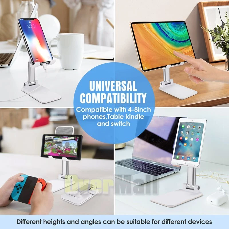Cell Phone Stand Tablet Mount Foldable Desktop Holder Cradle Dock Mobile iPhone Cell Phone Stand Tablet Mount Foldable Desktop Holder Cradle Dock Mobile iPhone BEST CUSTOMER SERVICE ON OUR sale2015express EBAY STORE↓ ↓ ↓ 〓SHIP From US Local Stock 〓FAST & Free, 1-6 Days Arrival 〓FREE Return, Seller Pay!! 〓LIFETIME Money Back Guarantee 〓LIFETIME Free Replacement Guarantee 〓LIFETIME Warranty 〓QUICKLY Reply within 24 Working Hours 〓 MOST orders ship within 1 business day with Tracking Number 〓 ANY PROBLEM please email us before feedback, thanks! Add our listing to Watchlist Or Add to Cart , you will get more discount!!! Features: 【Universal Compatibility】 : Universal phone stand compatible with iPhone and all smartphones between 4 and 8 inches, like iPhone X 8 7 6 6S 5 5S 4S Plus XS Max XR, Nintendo Switch, Huawei, Samsung Galaxy S10 S9 S8, Note 9 , LG, Sony, Nexus, Apple phones, even these phone with case, the hook width of the stand is13mm, please make sure the thickness of your device is no more than 13mm (0.51 in). 【Adjustable & Ergonomic Design】 : This mobile phone stand can be easily adjusted to the (10°~ 45°) angle by hand, and it stays firmly in place. The higher height aluminum arm provide comfortable viewing angle which helps to fix your posture and reduce neck & back strain. 【Nice Looking & Hands-free】 : This phone stand looks very stylish, supports hands-free. It's ideal for watching video, reading and studying, playing games, making video phone call and video conference, using Facetime and watching YouTube. It is a great desk accessories for your office and home. 【Fully Protective Silicone Pad】 : This iPhone Dock features fully covered anti-slip silicone pad which can maximum protect your device from any scratches and slide. Specification: Color: pearl white Application: universal for mobile phones and tablets Folding size: 6.6 (width)*2.6 (thickness)*11 (length) cm/2.6*1*4.3inch Extended height: 16cm/6.3inch Package includes: 1x Desktop Phone Holder 1x Protective Sticker Payment Shipping About Feedback About us Contact us Payment 1. Paypal Accept. 2. Payment should be sent within 4 (FOUR) days auction closing. Or unpaid dispute will be filed for closing auction. Shipping 1. Fast shipping from NJ, US. 2. Shipping available time: Mon. - Fri. exclude holidays 3. The orders will be handled in 24 hours after payment got. Ship to Paypal Address ONLY. About Feedback If you are dissatisfied for any reason, please do not be quick to leave negative/neutral feedback. We work hard to make sure EVERY CUSTOMER 100% SATISFIED and resolve any problem for you and always leave positive feedback to all our customers. About us 1. Welcome to OverMall, We pride ourselves on providing the outstanding service and high qualtiy products, make our customer feel confident buying online. 2. For the most US address, we offer free standard shipping . 3. By shopping with us, you can guarantee the latest technology for the best possible price. Contact us You are welcomed to contact me for any question. I will reply your email in about 24HRS in business days.