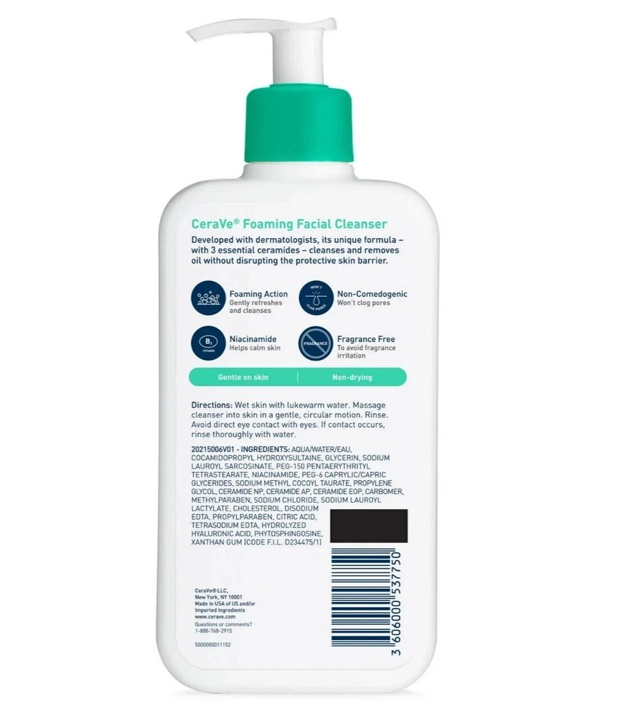 Oily Skin CeraVe Foaming Facial Cleanser Face Wash for Oily Skin 12 oz New US
