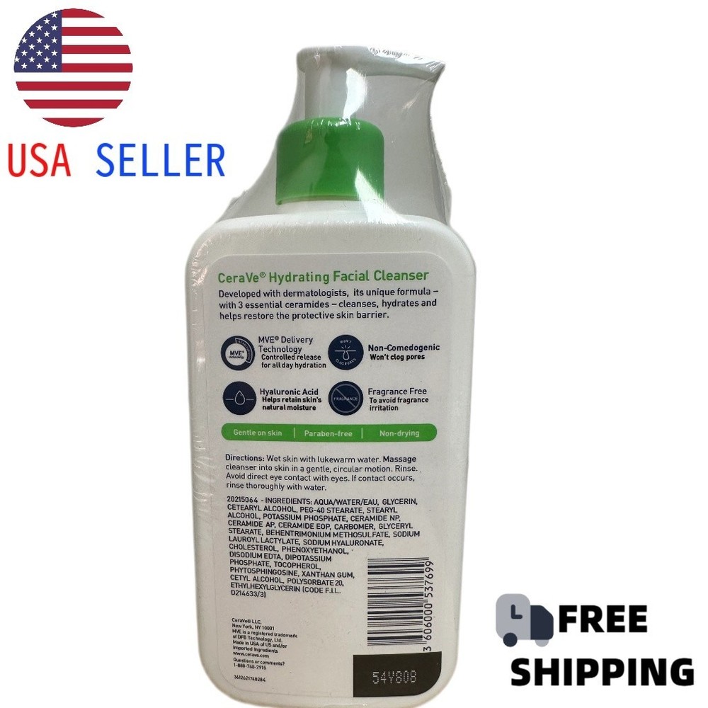 CeraVe Face Wash Hydrating Facial Cleanser for Normal to Dry Skin 12 FL US Free shipping
