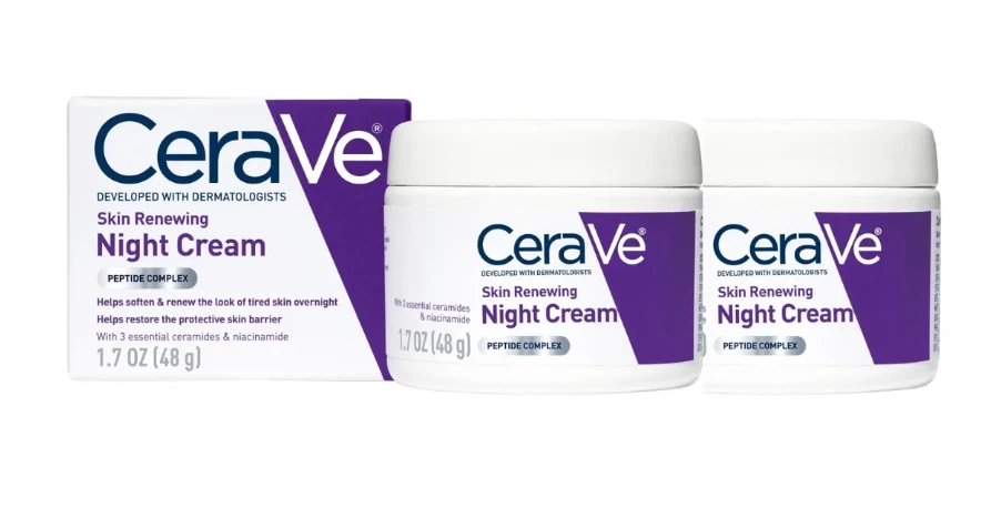 CeraVe Skin Renewing Face Night Cream w/Peptide Complex & Hyaluronic Acid, 1.7oz. (2 PACK)