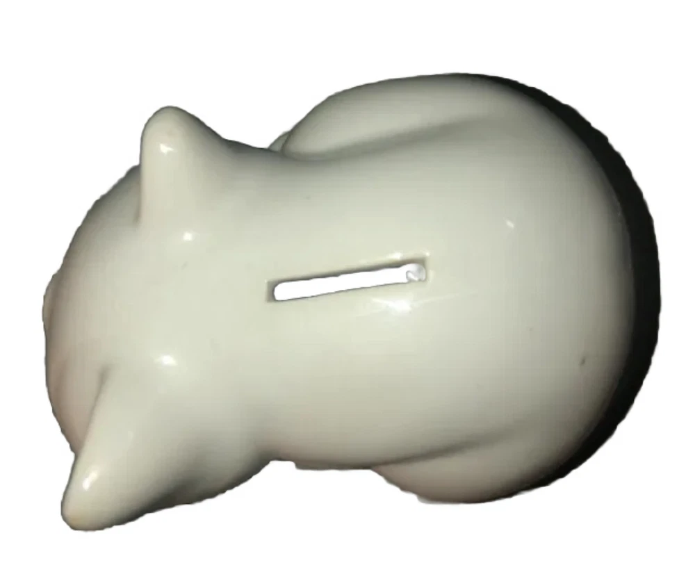 This adorable ceramic figurine bank features a sleeping white cat, perfect for any animal lover's collection. The piece is an original and made of high-quality materials, ensuring its durability for years to come. The bank is ideal for those who enjoy collecting still piggy banks and animal-themed items. It makes for a great decorative piece and adds a touch of cuteness to any space. Get your hands on this charming sleeping cat figurine bank today! No chips or cracks. (This listing is for one kitty bank there are two available) Thank you for stopping by,stay safe Shelf