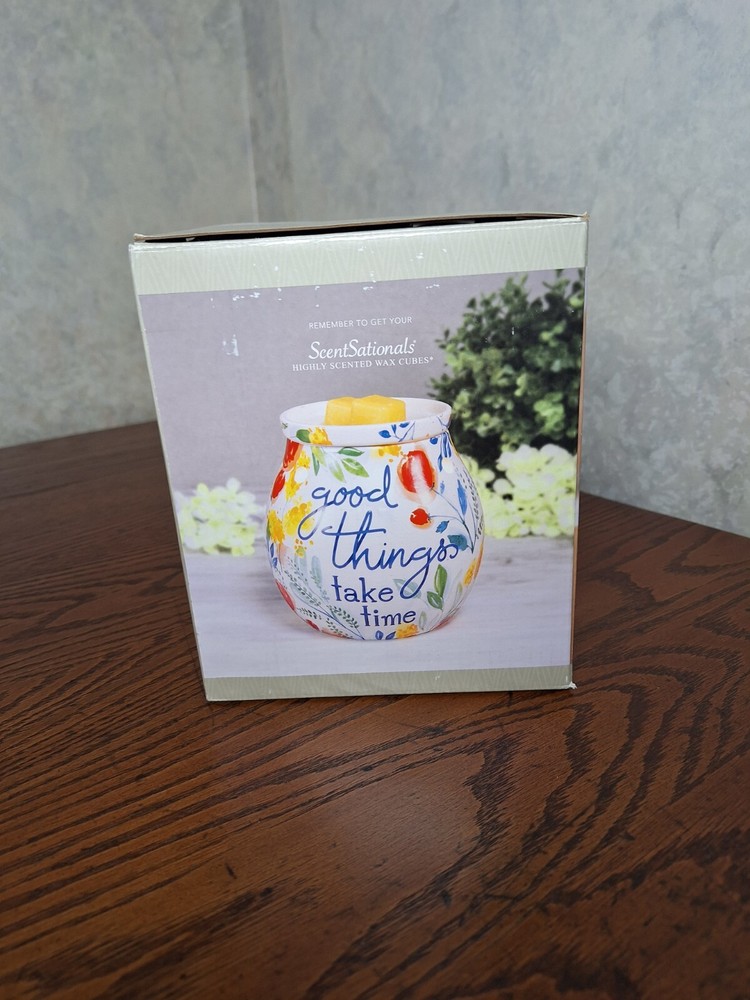 HomeCeramic Electric Wax Warmer with Metal Base - Good Things Take Time Scentsational Melter
