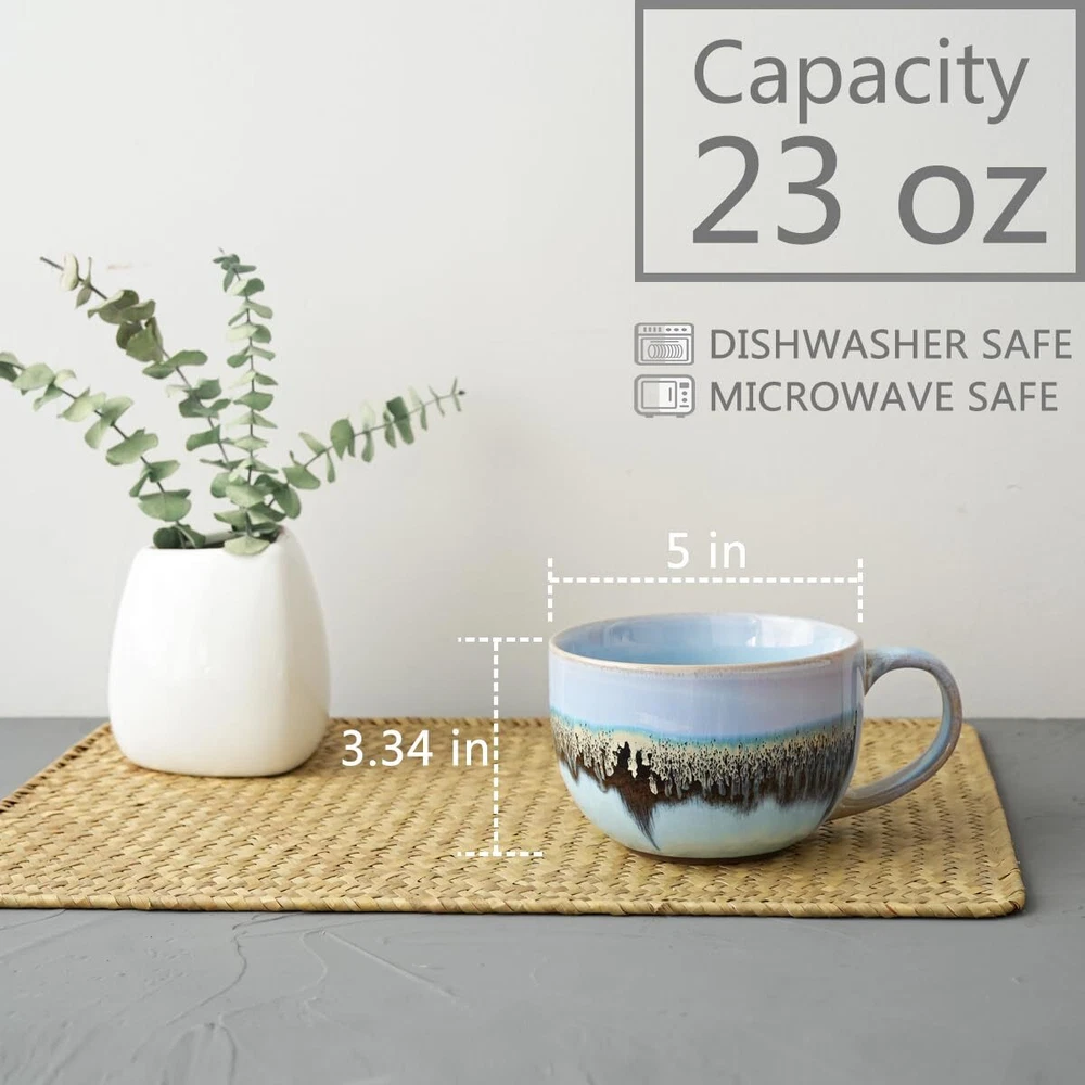Ceramic Large Coffee Mug Set of 2, 23 Oz, Jumbo Mug Soup Bowls with Handles, ...