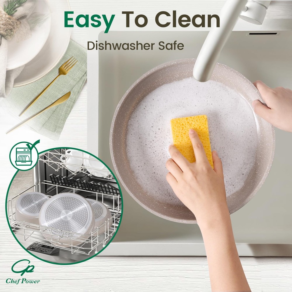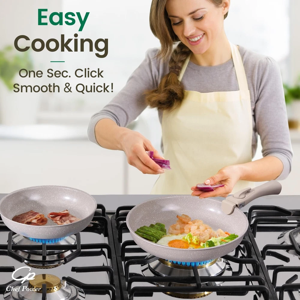 This ceramic nonstick set is a game-changer! The detachable handles save so much space, and the nonstick surface makes cooking and cleanup effortless. Love that it works on all stovetops and can handle high oven temps. The included lids, utensils, and protectors make it a complete package—perfect for everyday cooking. Highly recommend for anyone who wants durable, versatile, and easy-to-store cookware!