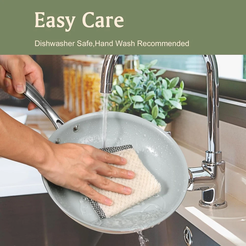 Cookware Ceramic Nonstick Frying Pans: 8"x9.5"x11", Beige Product Details Brand: Cookersway Material: Ceramic Coating, Aluminum Pan, Stainless Steel Handle Special Feature: Oven Safe, Non Stick, Lightweight, Induction Stovetop Compatible, Dishwasher Safe Color: Beige Capacity: 7.5 Liters Compatible Devices: Smooth Surface Induction, Gas, Electric Coil Product Care Instructions: Oven Safe, Dishwasher Safe Maximum Temperature: 550 Degrees Fahrenheit Handle Material: Stainless Steel Is Oven Safe: Yes Model Name: CWFB Has Nonstick Coating: Yes Is Dishwasher Safe: Yes Shape: Round Manufacture Year: 2024 Product Dimensions: 7.1 x 11 x 2.2 inches Item Weight: 6.29 pounds Country of Origin: China Item model number: CWFB28 Exceptional Nonstick Surface: Our nonstick frying pans feature a premium ceramic coating that allows for effortless food release. Enjoy cooking your favorite meals without worrying about sticking, making cleanup a breeze. Durable and Eco-Friendly Material: Crafted from high-quality ceramic, this ceramic cookware set is free from harmful chemicals such as PFOA and PTFE. Cook with confidence knowing that you’re using a safe and environmentally friendly option for your family. Dishwasher Safe & Oven Safe: Designed for convenience, these frying pans nonstick are both dishwasher safe and oven safe up to 550°F. This means you can easily clean them in the dishwasher and use them for baking or roasting in the oven, providing versatility in your cooking routine. Versatile Cooking Options: Whether you’re preparing breakfast eggs, sautéing vegetables, or searing meats, our skillet is perfect for all types of cooking. Its versatility makes it a valuable addition to your pan set, suitable for any meal of the day. Even Heat Distribution: The design of our ceramic pan ensures even heat distribution, preventing hot spots and ensuring perfectly cooked meals every time. This feature is essential for achieving consistent results in your culinary creations.