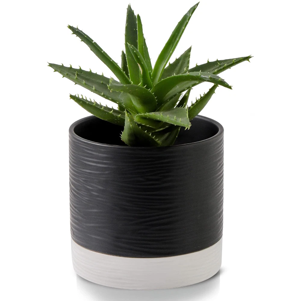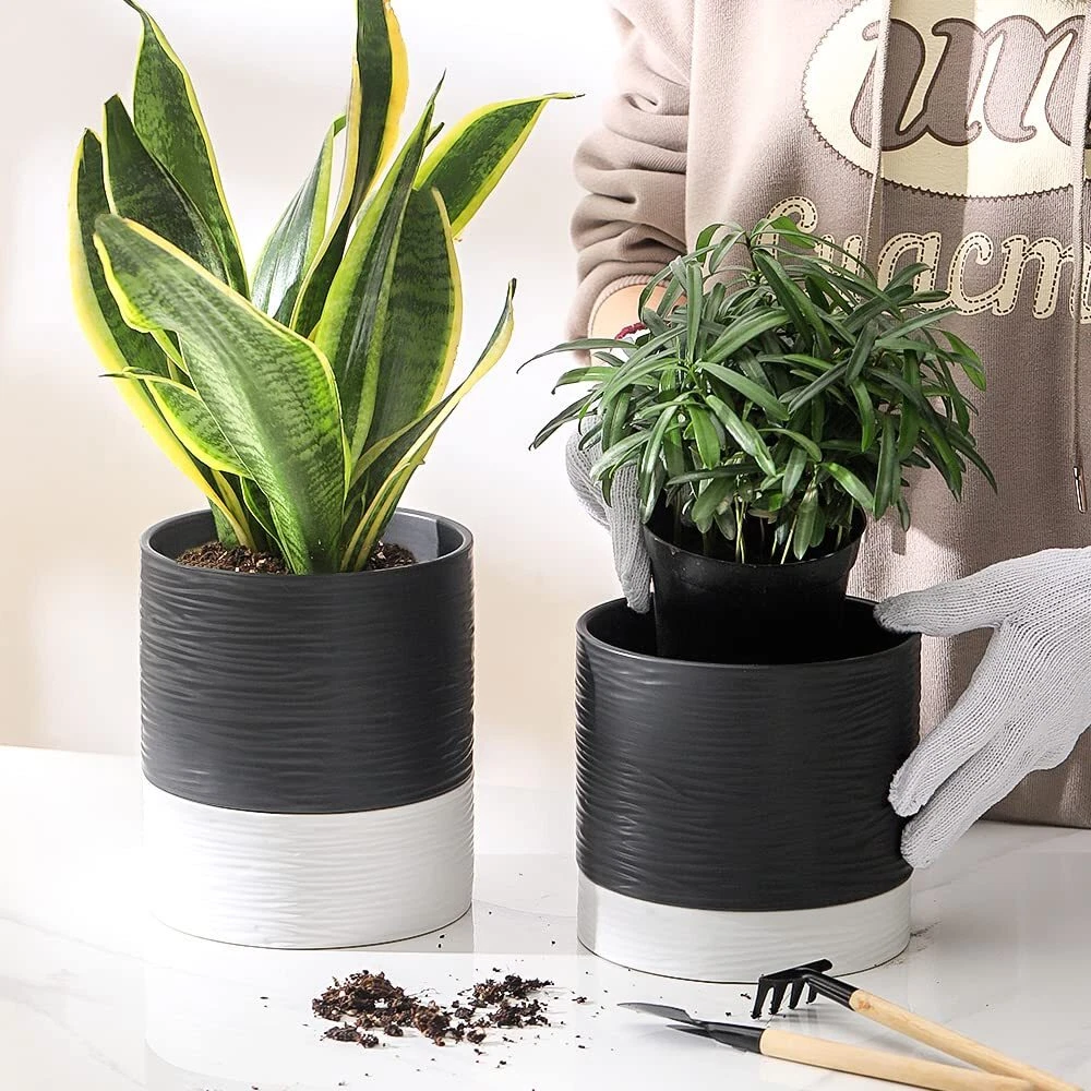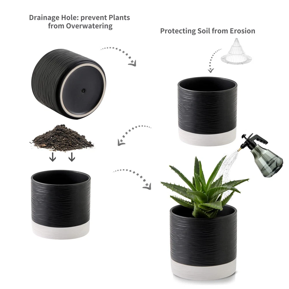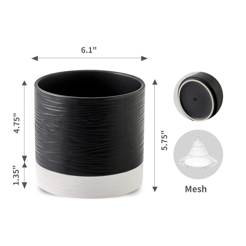 【HIGH QUALITY】These sturdy ceramic planters are made of high-fired ceramic. With inside and outside glazed finishing,these plant pots are easy to clean and healthy for plants to live. 【DESIGN】Each indoor plant pots come with a drainage hole and saucer to help drain excess water,coming with a mesh to prevend the soil run out ,providing an ideal environment for the growth of herbs. 【SIZE】The mordern planter pot Fit 5.5”Dia. x 4.25”H inner planter if you don't want to replant. 【Modern Color】The plant pot with timeless stripes create a chic and modern look that will complement any decor scheme. We provide strong packing to protect the goods from damage. If there's any damage after receiving the product, pls feel free to us.