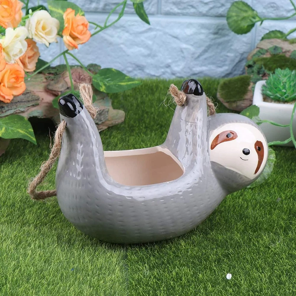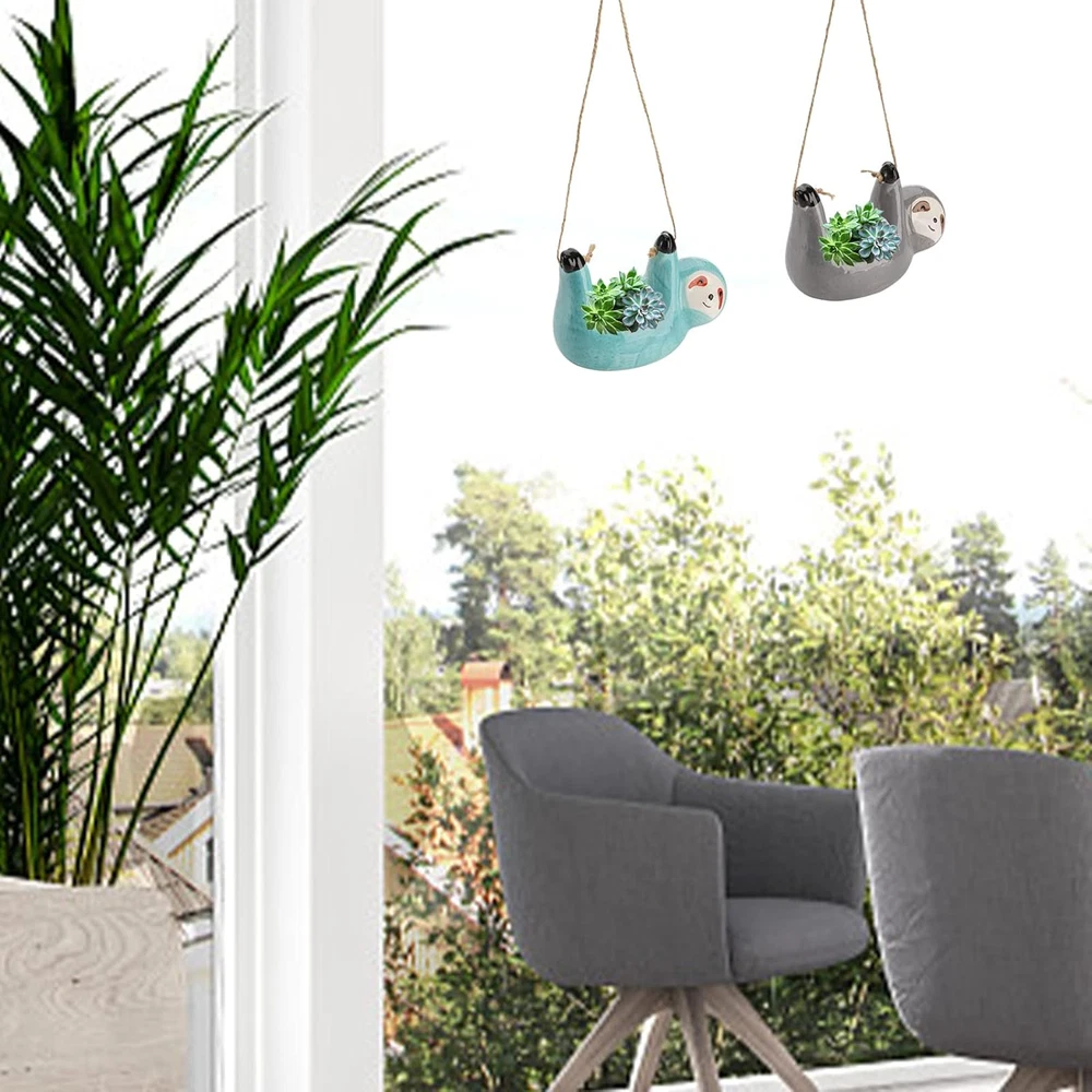 Ceramic Sloth Planters, 2 Pack, Premium Hanging Planters, Cactus Flower Pot New Cute Sloth Planters: Set of 2 handmade ceramic planters in blue and gray colors with etched detailing and twine for hanging. Premium Quality: Made from premium ceramics, these sturdy and durable planters do not fade, deform or paint by hand and are baked in high-temperature environments. Versatile Uses: Can be used to grow plants, store stationery, makeup brushes or kitchen utensils. Ideal for hanging in bedrooms, kitchens, balconies, gardens or offices. Charming Decor: The sloth planter is like a little hammock for your plants and brings great vibes and happiness wherever it goes. Unique Gift: An adaptable and thoughtful gift for parents, friends, gardeners or plant enthusiasts. Suitable for Christmas, birthdays, anniversaries and other special occasions. Copyright: Sloth Hanging Planter by Okllen - VA0002288789 3.5 inches x 6.5 inches x 4.7 inches. Weight: 0.0 grams Style Modern, Contemporary Item Dimensions 6.5 x 3.5 x 4.7 inches Pattern Solid Material Type Ceramic Theme Animals Finish Types Painted Subject Character Sloth Number of Pieces 2 Material Ceramic Additional Features Durable Included Components 2 Ceramic Sloth Planters Plant or Animal Product Type bonsái, flores, suculenta, hierbas Special Feature Durable Planter Form Plant Pot Number of Levels 1 Mounting Type Hanging,Wall Mount Color Blue,gray Item Dimensions D x W x H 6.5"D x 3.5"W x 4.7"H Indoor Outdoor Usage Indoor Shape Round Style Name Modern, Contemporary