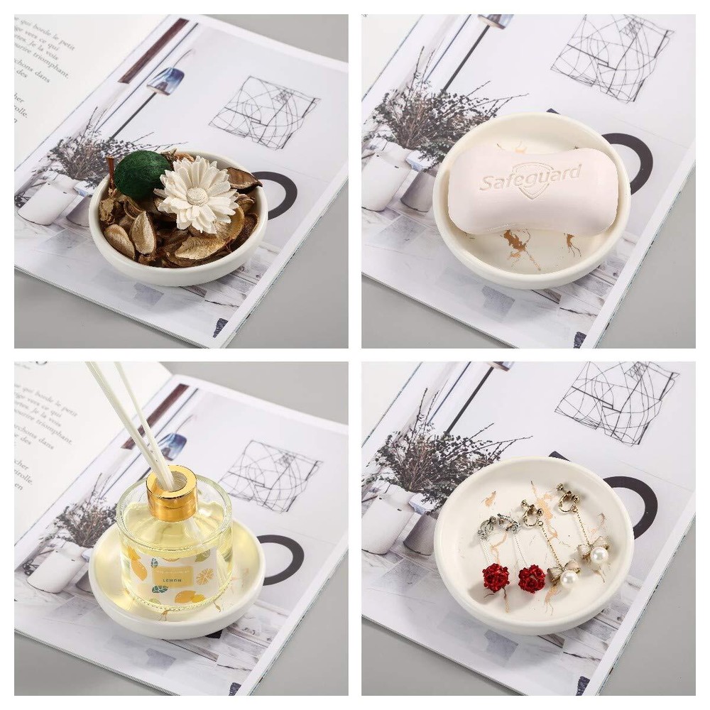 JinGlory Ceramic Soap Dish Tray Holder for Bathroom or Kitchen,Jewelry Tray,Trinket Plate,Home Décor, Elegant White Color 【Light Luxury Design】With irregular golden color lines and classical white color makes your home simplicity 【High Quality Ceramic】Crafted from great quality glazed ceramic with diameter 4.4 inch (11cm) ,the smooth appearance makes it easy to wash with water or a clean cloth; do not place in dishwasher 【Multifunctional Tray】The perfect soap dish holder for bar soap , homemade soap ,facial soap ,scrubbers and more; Great storage or display for your favorite earing necklace, rings, contact lenses ,etc ; also can be used to hold mugs or any sundries. 【Suits Your House】The versatile function makes it suitable for your bathroom ,kitchen ,living room ,dressing room etc. 【Ideal Gift】Graceful , exquisite and functional ,make it an ideal gift for your friends , family and lover etc. SHIPPING Domestic Buyers - We have confidence in our products, but if you are not fully satisfied please contact us within 30 days of purchase and you will get full refund. - We ship within 3 business days of payment, usually sooner - We offer FREE shipping on all orders! - We only ship to the lower 48 states, no APO/FPO addresses or PO Boxes allowed International buyers – please note: Import duties, taxes, and charges aren't included in the item price or postage cost. These charges are the buyer's responsibility. - Please check with your country's customs office to determine what these additional costs will be prior to bidding or buying. * Order Cancellation Policy ** You can return a product for up to 30 days from the date you purchased it. 1. The seller reserves the right to cancel the special case only due to eBay cancellation fee. 2. The decision of seller is the final. 3. The seller will respond to the cancellation request within 2 business days. Please wait for the result of cancellation. 4. In case the cancellation is not completed by some reasons, the buyer can follow the options below to get the refund. 4.1 The buyer can reject the item when it arrives. 4.2 The buyer can send the item back to the seller within 30 days If the buyer receives item (USA Shipment ONLY). The seller will provide the FREE return label to the buyer when the buyer opens " Return Item" case on eBay by using the reason as "Change my mind" ONLY. 5. When buyer has placed the order. The order will be processed and completed by automatic warehouse system within 5 minutes. In case that buyer sends the cancellation request after 5 minutes of placing the order, the request will be rejected. **Sending direct message to cancel the order is not allowed for every case.* Return Policy For the return case - If buyer would like to return the items for refund or replacement, please CONTACT SELLER to receive the free return label from seller. The refund or replacement will be processed with the tracking number of return label which is provided by seller only. The other ways of return which are not approved by seller will not be processed for the refund or replacement.