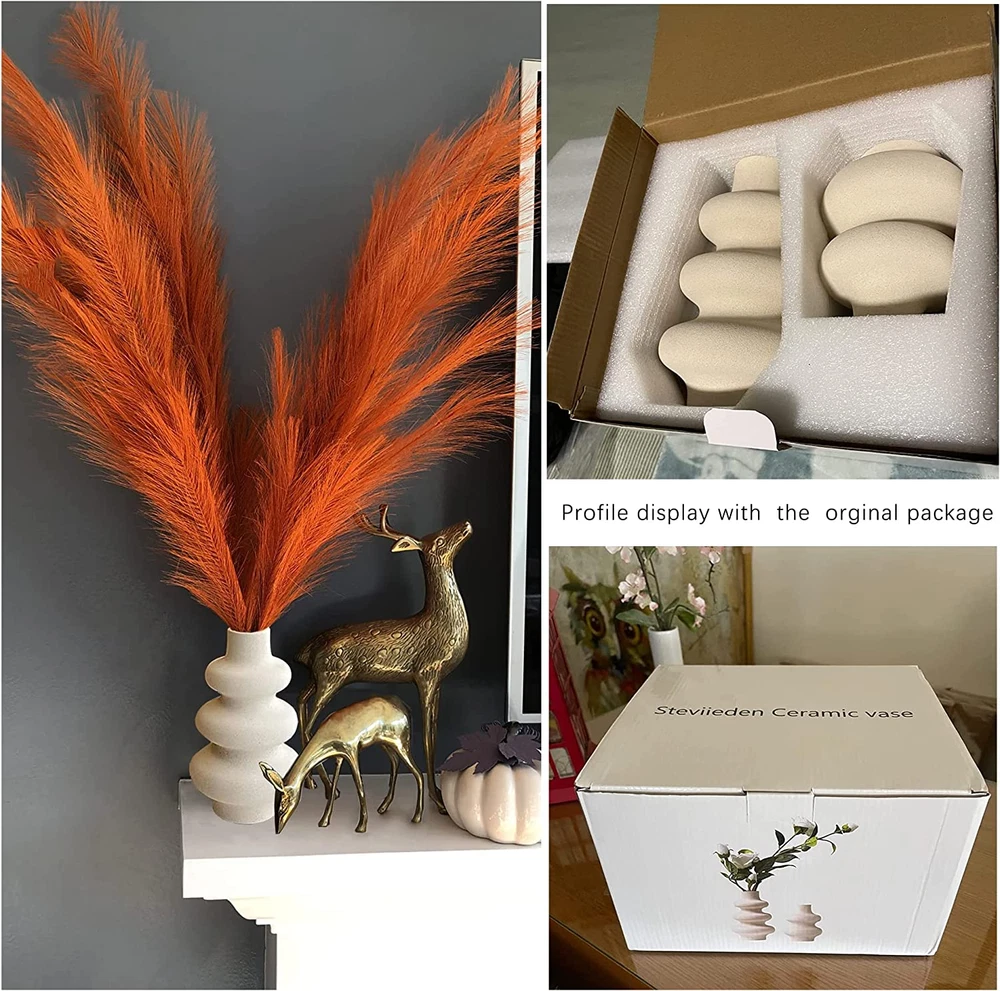 Store New Arrivals Add to Favorite View Feedback Contact Ceramic Vases Set 2, Modern Home Decor,Off White round Vases,Modern Dried Flower Vases, Boho Home Decor for Centerpieces Wedding Dinner Table Party Living Room Office Bedroom Description Pattern Solid Material Type Ceramic Theme Flowers Finish Types Matte Embellishment Feature bookshelf and other decoration, Living room, dining table, bedroom Number of Pieces 2 Item Shape Bottle,Modern,Round Room Type Living Room, Home Office, Dining Room, Bathroom, Bedroom, Hallway, Shelf, Mantel, Farmhouse rustic Product Dimensions 9.4"L x 5.1"W x 8.7"H Material Ceramic Installation Type Home Decor Occasion Type Engagement, Wedding, Housewarming, Thanksgiving, Women's Day, Valentine's Day Item Weight 2.5 Pounds Special Features Matte Item Dimensions L x W x H 9.4"L x 5.1"W x 8.7"H Mounting Type Table Color Off White Shape Bottle,Modern,Round Recommended Uses For Product Mainly use the vase by inserting dried flowers, fake flowers, artificial flowers, cut flowers, or inserting pampas grass, eucalyptus leaves, etc.; or Pour water into a vase and insert fresh flowers such as roses and tulips, the inside of vase is smooth and glazed. Style Name Modern , bohemia , Boho Size S&L Unique Modern Vases: Our contemporary-styled minimalist vase set has an elegant sculptural and modern look, and can blend well with any décor styles. The figure of round matte vases is frosted and delicate, making a gritty sand texture, giving them a solid, expensive feel, and bringing elegance and romance to your home. Pack of 2 Vases Dimensions: Large vase (8.7’’H x 5.1’’L, Bottle Mouth 2’’), small vase (5.9’’H x 4.5’’L, Bottle Mouth 1.8’’). *Please allow a little off measurement due to handmade. They are creamy off-white / light beige color vases. *Please understand the color of the vase may vary under different screens and lights. Handmade Ceramic Vases: 2 off-white vases are crafted of thick ceramic, glazed inside. Add a variety of dried florals, pampas grass, reeds, long stems, cut flowers, fresh bouquets (can hold water), to make the Perfect Décor Combo, or even just displayed them alone on a shelf will be an eye-catcher. Pampas Flower Vases for Perfect Décor: These 2 donut design pair of vases for boho decor will be perfect centerpieces for all occasions, Wedding, Living Room, Bedroom, Dining Room, Coffee Table, Hallway, Shelf, Mantel, Office, etc. A Great Art Piece as Gift: Modern Ceramic Decor Vase nicely packaged in a white thick cardboard box serves as a Wonderful Gift for Holidays, Wedding, Parties, Housewarming, and all special events. If there is any problem, please kindly tell us. Thank you.Please notes: These vases are handcrafted, color variations are unavoidable due to the temperature of the kiln and the consistency of the manual glaze. Product Description Please notes: These vases are handcrafted, color variations are unavoidable due to the temperature of the kiln and the consistency of the manual glaze Steviieden Ceramic Donut Vase Décor Set of 2 1. Size: Large: 8.7’’H x 5.1’’L (22cm*13cm), Bottle Mouth 2’’(5cm) Small: 5.9’’H x 4.5’’L (15cm*11.5cm), Bottle Mouth 1.8’’(4.5cm) 2. Handmade Ceramic -2 pieces of ceramic vases, different sizes, delicate beige color with frosted finish. 3. Off White Vases -They are perfect for displaying fresh bouquets, hay, dried flowers, branches, twigs etc. Modern Dried Flower Vase Use With Bouquets Home Table Floor Decor Round Matte Pampas Flower Vases Dessert spots; Elegant ‘S’ shape model; Smooth bottle bottom not hurt hands and tables. Decorate your Living room, Bedroom, Dinner room, Office, Table, Shelf, Mantel Etc, adding a touch of art. If you want a handmade crafted decent holiday gift to your loved family and friends, neighbors and colleagues, this elegant donut vases will be a perfect choice to give you fun and easy experience of flower arrangements. Bottle body The frosted bottle highlights the modern and stylish style and stands out in the décor Bottom bottle Smoothly polished base helps to stabilise the table while keeping the bottle balanced Bottle mouth The rounded mouth of the vase makes it easier to insert flowers, and stabilise them. Customer's review and photo ABOUT US We offer the best prices around on high quality products. Our E-store includes media such as books, movies, music and games while offering electronics, toys, sporting apparel, clothing, tools, general home, garden items and more. SHIPPING We are always working hard to ensure your package arrives as soon as possible. Please understand that some factors like weather, high postal traffic, and the performance of shipping companies are outside of our control. We offer free shipping to the lower 48 states and ship within 2 business days of payment, usually sooner. We do not accept P.O. Boxes. Please provide a physical address. For shipping outside of the continental USA, we only use eBay's Global Shipping Program.The item is shipped to KY and then sent to the rest of the world. International customers are responsible for all duties and taxes. Continue to check out in order to calculate costs for shipping the item to your country. Messages regarding eBay's Global Shipping Program MUST be directed at eBay EXCLUSIVELY. RETURNS We offer a 30-Day Return Policy on items which you are not completely satisfied with. You have the option for a full-refund or an exchange of the item. No returns are available on items shipped outside of the USA. PAYMENT We accept PayPal. CONTACT US This page content is yet to come Please ad us to your favorite seller and visit again later Thank You CUSTOMER SATISFACTION We try our very best to make sure every customer is completely satisfied. If there's a problem, message us! We're happy to help. WE ACCEPT Copyright © 2021 AutoDS. | All Rights Reserved