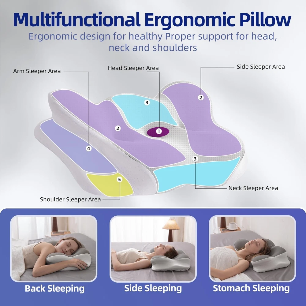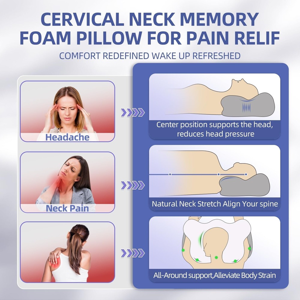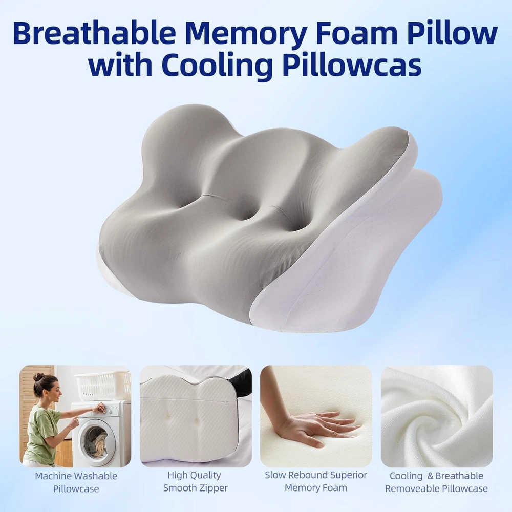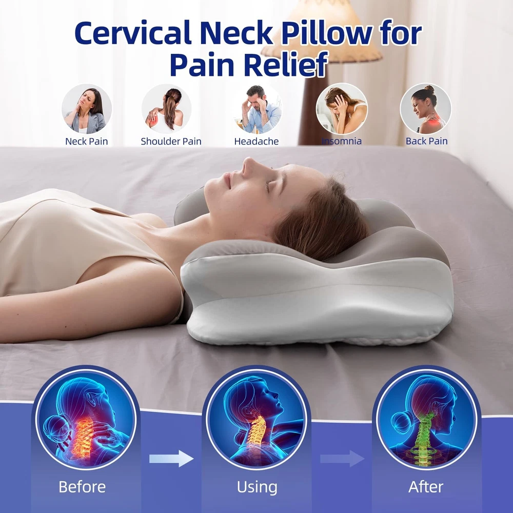 This pillow is a game-changer for neck pain! The memory foam contour provides perfect support, and the cooling pillowcase keeps me comfortable all night. I wake up feeling refreshed with no more stiffness—great for any sleeping position. Highly recommend!