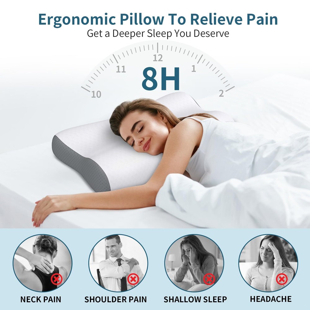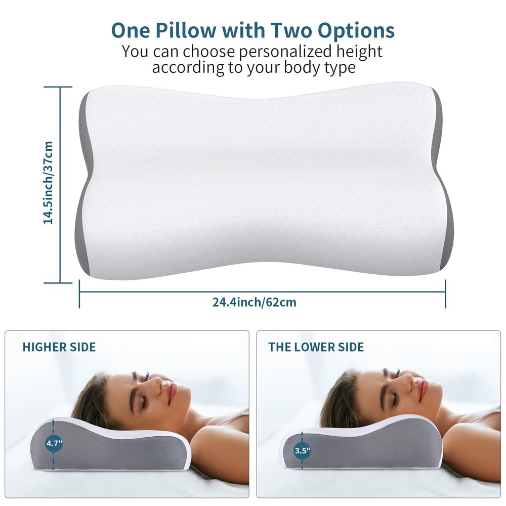 Cervical Neck Pillow Memory Foam Pillows for Neck Pain Relief, Ergonomic Pillow for Shoulder Pain, Contour Pillow for Sleeping, Orthopedic Bed Pillows Neck Support for Side Back Stomach Sleepers 【Pain-Relief Cervical Neck Pillow】 Do you suffer from insomnia all night? Do you wake up with neck cramps or back pain? Say goodbye to restless nights with Beslovo memory foam pillows. Our ergonomically neck pillow combines traditional bed pillow follows the natural curve of the body, easing fatigue and discomfort during sleep. It supports your back, head and neck correctly, makes you feel sleepy soon after lying down and quickly get into sleep. Choose us, choose better sleep and better life! 【Safe & Odorless-Premium Memory Foam Pillows】Beslovo cervical pillow is made of CertiPUR-US and Oeko-Tex certified memory foam, which provides amazing comfort and soft yet sturdy support for sleep. When lying on this neck Pillow, it feels like floating on water or clouds, without any pressure on your skin. Special fast rebound memory foam won't change its shape and firmness due to season. Unleash your best sleep with our ergonomic pillow- the ultimate blend of comfort, style, and quality! 【Cooling Skin-friendly & Washable Pillowcase】Don't let stuffy pillows ruin your sleep. Our side sleeper pillow comes with a skin-friendly ice silk pillowcase that reduces heat and wicks away moisture, keeping you cool and refreshed during the night. The cooling pillow cases are made of breathable fiber fabric that fits perfectly with our skin, allowing you to fall asleep faster and deeper.The skin-friendly pillowcase is removable and machine washable,it is recommended to clean it once a month. 【2 Personalized Height in A pillow for Any Sleep Style】- Do you often toss and turn because you can't find the height that suits you? Beslovo cervical pillow helps you to fix this trouble. Our memory foam pillows comes two height options with size 24.8*14.5*4.7/3.5 inch ( L x W x H). The ergonomic and supportive pillow for neck pain is designed for multiple sleeping positions, such as side sleeping, supine, stomach sleeping, back sleeping and low pillow sleepers etc. 【Perfect Gift Choice】Beslovo cervical pillow for neck and shoulder pain provides good solution for the elderly, office workers, students and all ages people. Memory foam will have a very slight smell after passing through a high temperature and airtight transportation environment. This is a normal phenomenon. After receiving it, pls place pillow in a cool and ventilated place for 3-5 days. If for any reason you're not satisfied with our orthopedic pillow, just contact us if any issues arise! Why Choose Beslovo Neck Pillow Cervical Memory Foam Pillows for Neck Pain Relief? 1. Made of high density memory foam with removable cover for washing. 2. Ergonomic construction help you wake up in the morning without any annoying neck pain. 3. Enhance breathing smoothly, reduces snoring problems while reducing tossing and turning. Finally escape from late night insomnia and easily enter into sweet deep sleep full of wonderful dreams.Choose our comfortable neck pillow to enjoy high quality sleep, and enjoy a warm and beautiful day with your loved ones. Core Features: 🌛3S fast Rebound Memory Foam: The pillow will rebound within 3S when no press, non-deformation all the year. Perfect firmness, ideal balance between soft and support. 🌛Coolong & Breathable Pillowcase:The neck pillow comes with ice silk pillowcase, which is made of soft comfortable ice silk fabric and mesh sides. 🌛Machine Washable Pillowcase: Removable and machine-washable.The contour pillow cover does not pill and suits for autumn and winter. 🎁2 Adjustable Heights for Any Sleep Style:There are two available neck support heights to support your neck and head. 🎁Perfect Gifts Choice: This fast rebound memory foam cervical neck pillow is appropriate for elderly, office workers, students and all ages people for deeper sleep. Good gift to show your care to somebody you concerned Shipping We offer FREE shipping on all orders! We ship within Three business days of payment, usually sooner. We use a selection of shipping services such as UPS, FedEx, USPS etc. We only ship to the lower 48 states, no APO/FPO addresses or PO Boxes allowed. Local pickups and combined shipping options are not provided at this time. Return You can return a product for up to 30 days from the date you purchased it. Any product you return must be in the same condition you received it and in the original packaging. Please keep the receipt. Feedback Customer satisfaction is very important to us. If you have any problem with your order, please contact us and we will do our best to make you satisfied. Contact Us If you have any queries, please contact us via ebay. We usually respond within 24 hours on weekdays. Please visit our eBay store to check out other items for sale! Thank you for shopping at our store.
