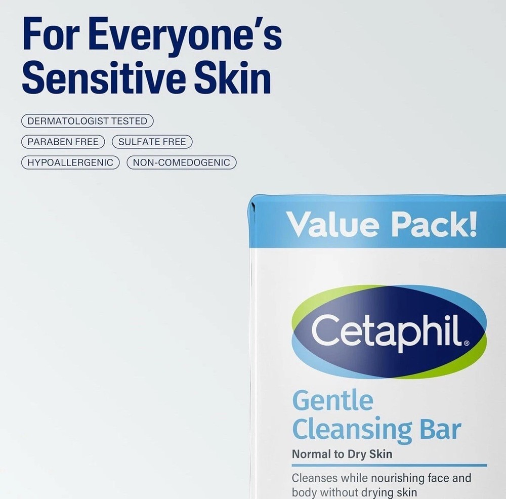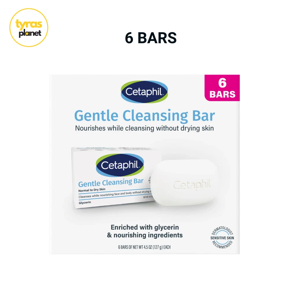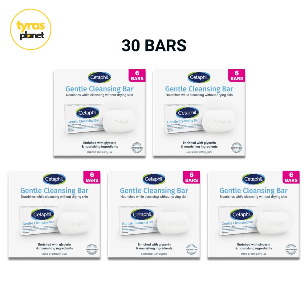 Get Your Cetaphil Gentle Cleansing Bar - Choose Bars (6, 12, or 30 Bars) Pick the number of bars you'd like from the options bars! Each box contains 6 Gentle Cleansing Bars, so you'll get exactly the quantity you choose This soap-free bar is formulated with 5 nourishing ingredients to gently cleanse the skin without drying it out, maintain the skin's natural moisture barrier, and preserve its protective oils, leaving skin feeling soft and clean. Defends against 5 signs of skin sensitivity, including a weakened skin barrier, irritation, roughness, tightness, and dryness. Features: Six 4.5oz Bars/ BOX Moisturizes Rinses Easily Great for Dry and Sensitive Skin Non-Comedogenic