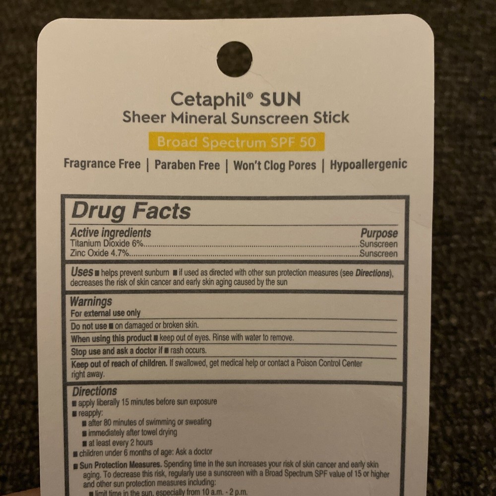 Cetaphil Sun 50 Sheer Mineral Sunscreen Stick SPF 50 0.5 oz 02/26.