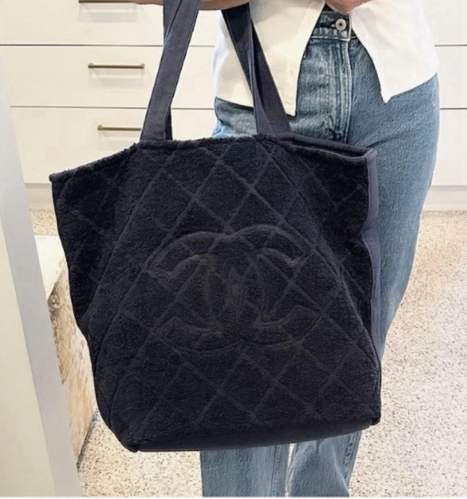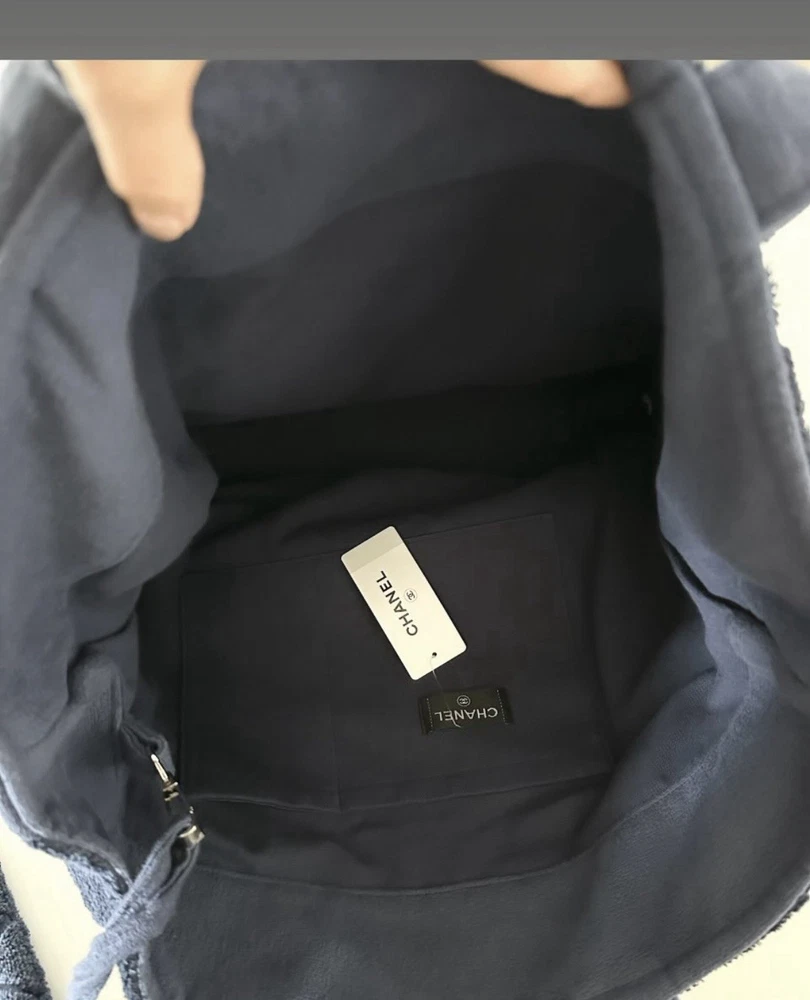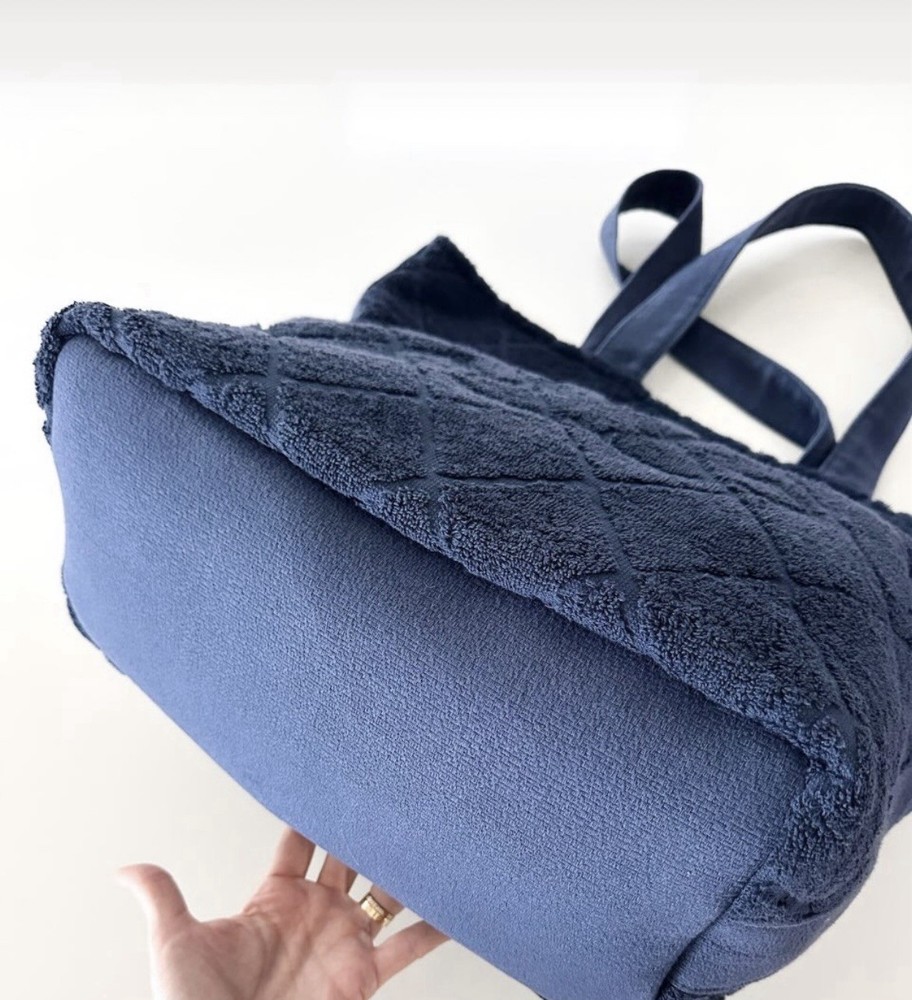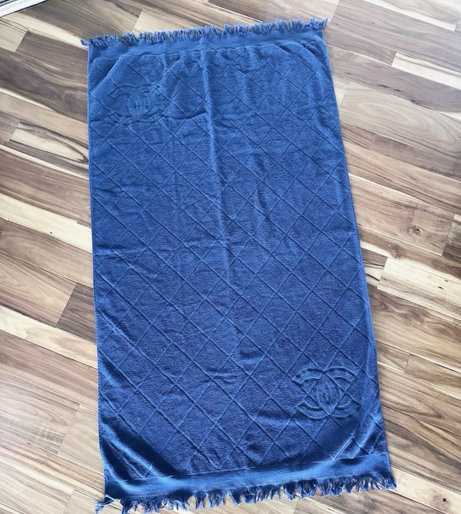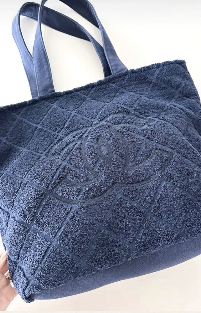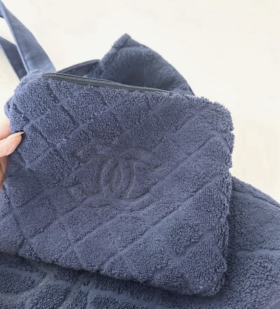 The Real Real has this bag used and listed for $2300. This is an amazing price for brand new bag!! Brand new Chanel beach bag with towel and pochette! Navy blue Paid $2400 plus tags