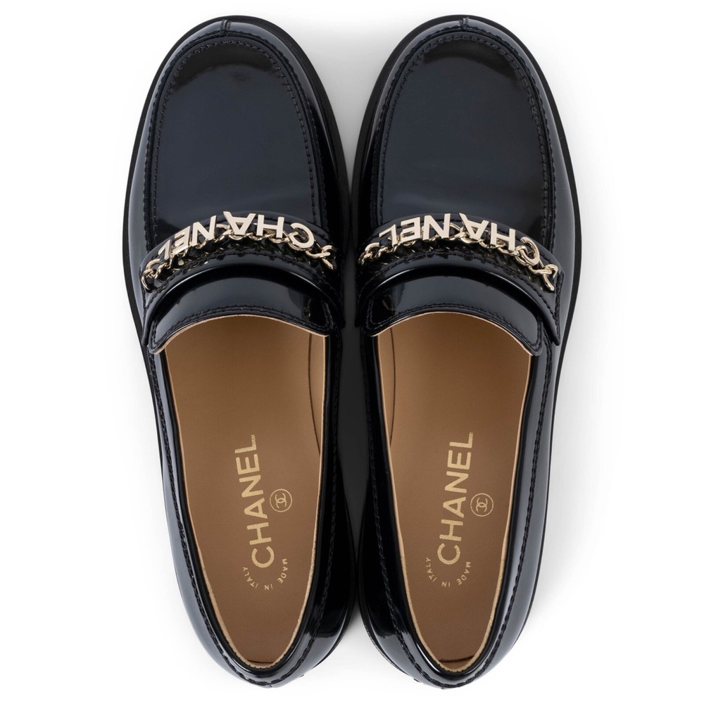 Just got these Chanel loafers and they're even more stunning in person! The black patent leather is so chic and the gold logo is the perfect touch. They run a bit large, so sizing down was the right call. Incredibly comfortable right away. An absolute wardrobe staple!