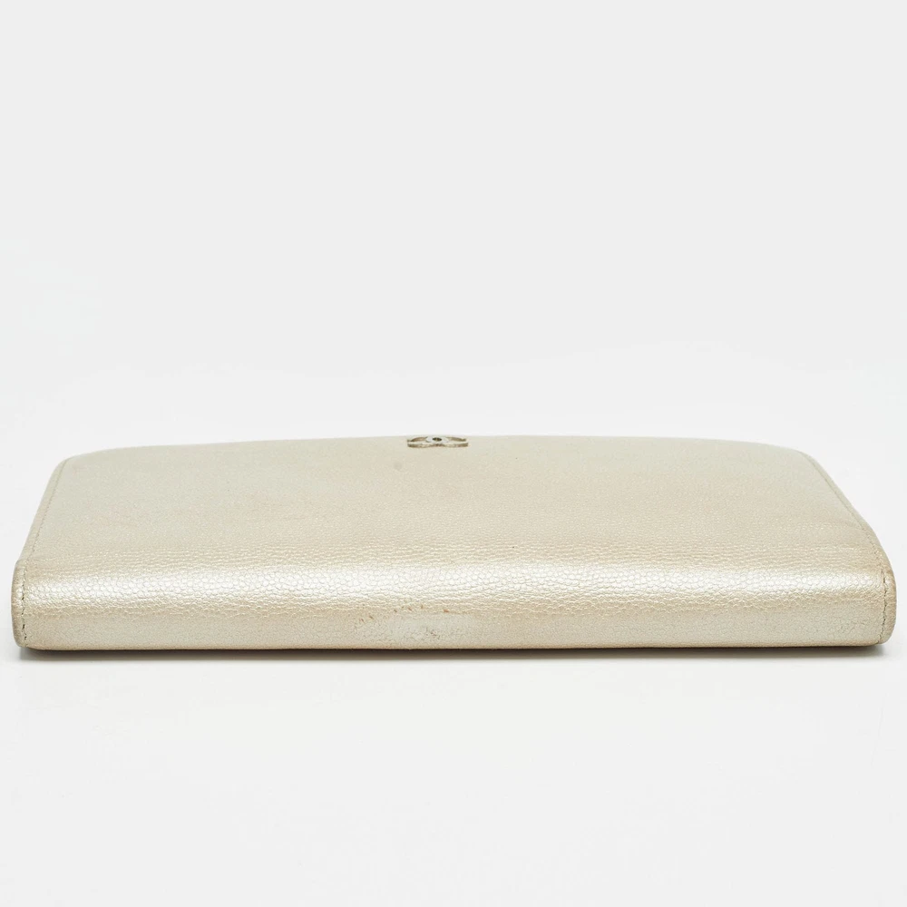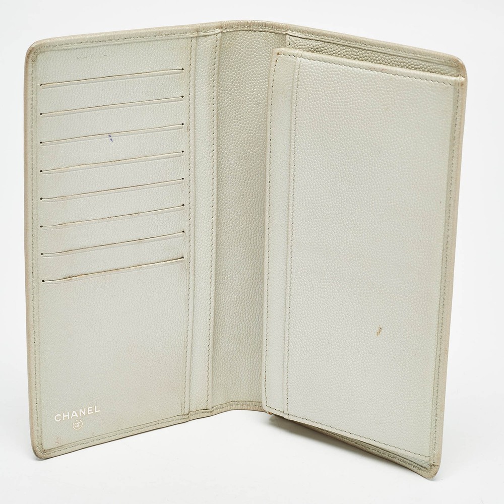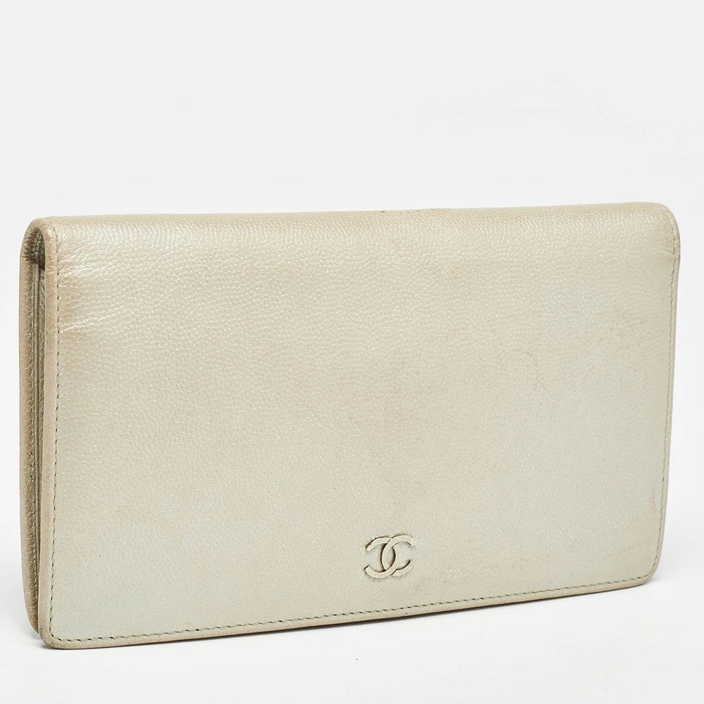 This designer wallet is an immaculate balance of sophistication and rational utility. It has been designed using prime quality materials and elevated by a sleek finish. The creation is equipped with ample space for your monetary essentials.Certified by The Luxury Closet - This item has gone through a detailed authentication process overseen by our experts. We offer a lifetime guarantee of authenticity on all our items. Import duties, taxes and charges are not included in the item price. These charges are the buyers responsibility. Please check with your country’s customs office to determine what these additional cost will be prior to buying. Our eBay Store About Us Contact Us Add to Favorite Sellers Chanel Pearl White Caviar Leather CC L Yen Continental Wallet $185.9 This designer wallet is an immaculate balance of sophistication and rational utility. It has been designed using prime quality materials and elevated by a sleek finish. The creation is equipped with ample space for your monetary essentials. Product Details Brand Color White Dimensions Height: 10 cm, Width: 2 cm, Length: 18.5 cm Material Leather Size L Outsole Width Outsole Length Heel Height Includes The Luxury Closet Packaging Certified by The Luxury Closet This item has gone through a detailed authentication process overseen by our experts. We offer a lifetime guarantee of authenticity on all our items. How We Check The in-house team of experts at The Luxury Closet is highly trained to verify the authenticity and the condition of the luxury products. They ensure that only 100% authentic items are put on sale.The evaluation process is unique with its own mix of assessment criteria and differs according to the category. Each item is evaluated based on the following combination of hallmarks, hardware, stitching, symmetry, material, craftsmanship, stamping, codes, hologram stickers, and packaging. Our authenticators also check if the items have been modified or amended (e.g., aftermarket diamonds, replaced batteries, repaired bags, etc.) International Buyers Import duties, taxes and charges are not included in the item price. These charges are the buyers responsibility. Please check with your country’s customs office to determine what these additional cost will be prior to buying.