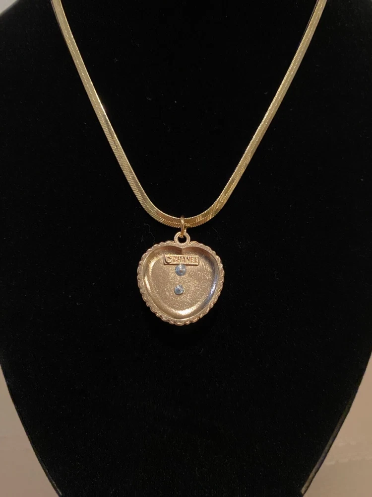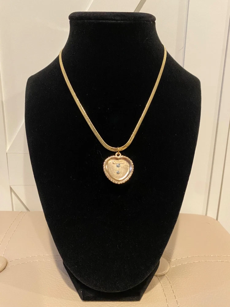Main Stone Shape: Heart Theme: Beauty, Love, Signs & Symbols Occasion: Anniversary, Birthday, Christmas, Confirmation/Communion, Engagement, Graduation, Mother's Day, Valentine's Day, Wedding Main Stone: Rhinstones Type: Necklace Pendant/Locket Type: Charm Chain Type: Snake Main Stone Color: Gold Metal: Yellow Gold Plated Color: Gold Style: Pendant Brand: CHANEL Necklace Length: 17 in Number of Gemstones: 18 Pendant Shape: Heart